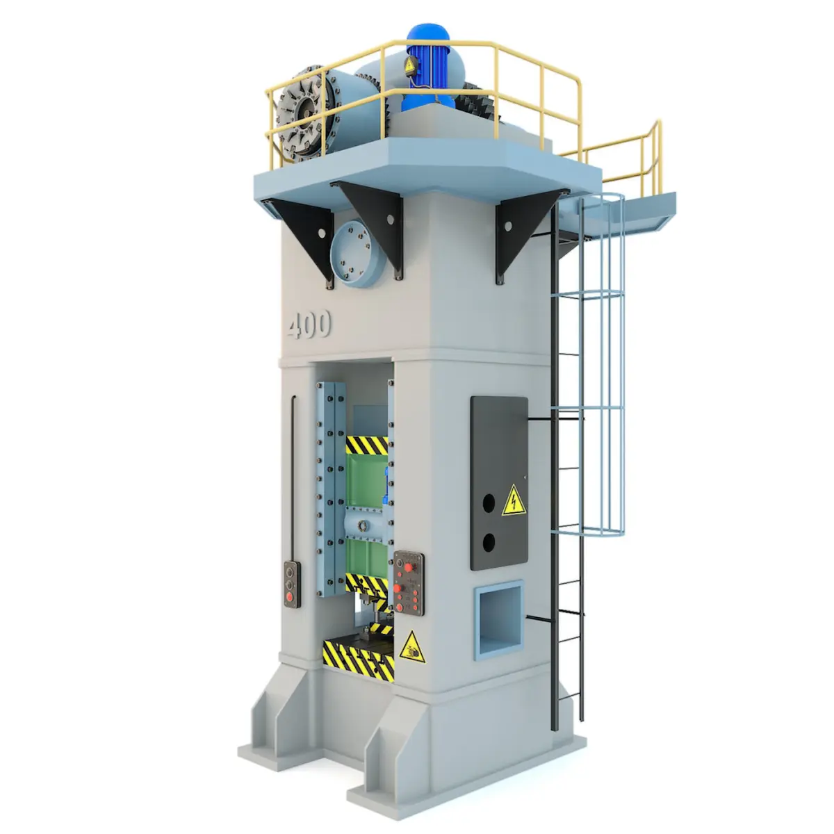 3d model: The KB9536 mechanical stamping press machine is a highly detailed model designed for industrial projects with maximum realism. A computer model of a crank mechanical press of the KB9536 type is a very well-developed, detailed version of a stamping machine with a fairly large set of indicators that can certainly be implemented in the direction of graphics under certain conditions. For example, the same press that appears under the abbreviation KB9536, which has sufficient force for certain stamping works, will become a very promising unit for implementation in 3d. After all, it is precisely such and similar equipment that could be successfully placed in certain production conditions. After all, the press has become very widespread and can perfectly fit into almost any project as the main model or become an element of a much-needed industrial environment. As you can see in the render pictures presented by us, even the smallest elements that relate to bolts, nuts, screws were worked out in the process of creating the press. At the same time, a high level of elaboration of all the components of the press machine was implemented, which in the general feed was reflected in a positive prickle on the appearance of the machine from the most presentable position. All the spare parts and components of the press were recreated by us on the basis of real pieces of equipment of this type.