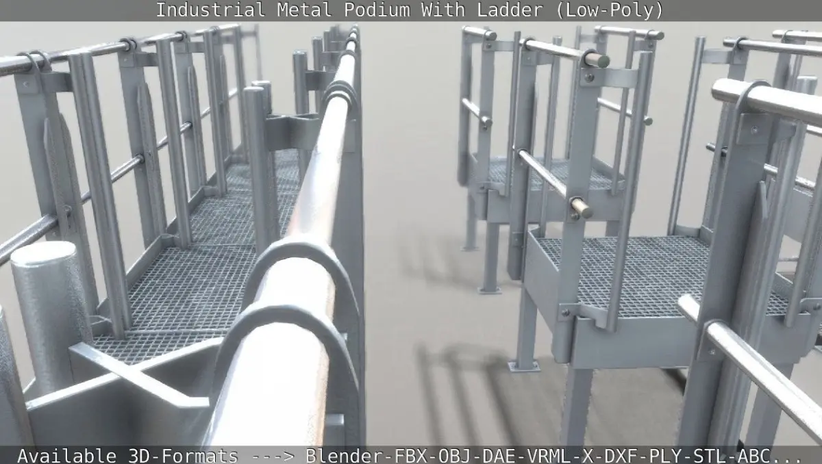 Industrial Metal Podium With Ladder (Low/Mid-Poly)