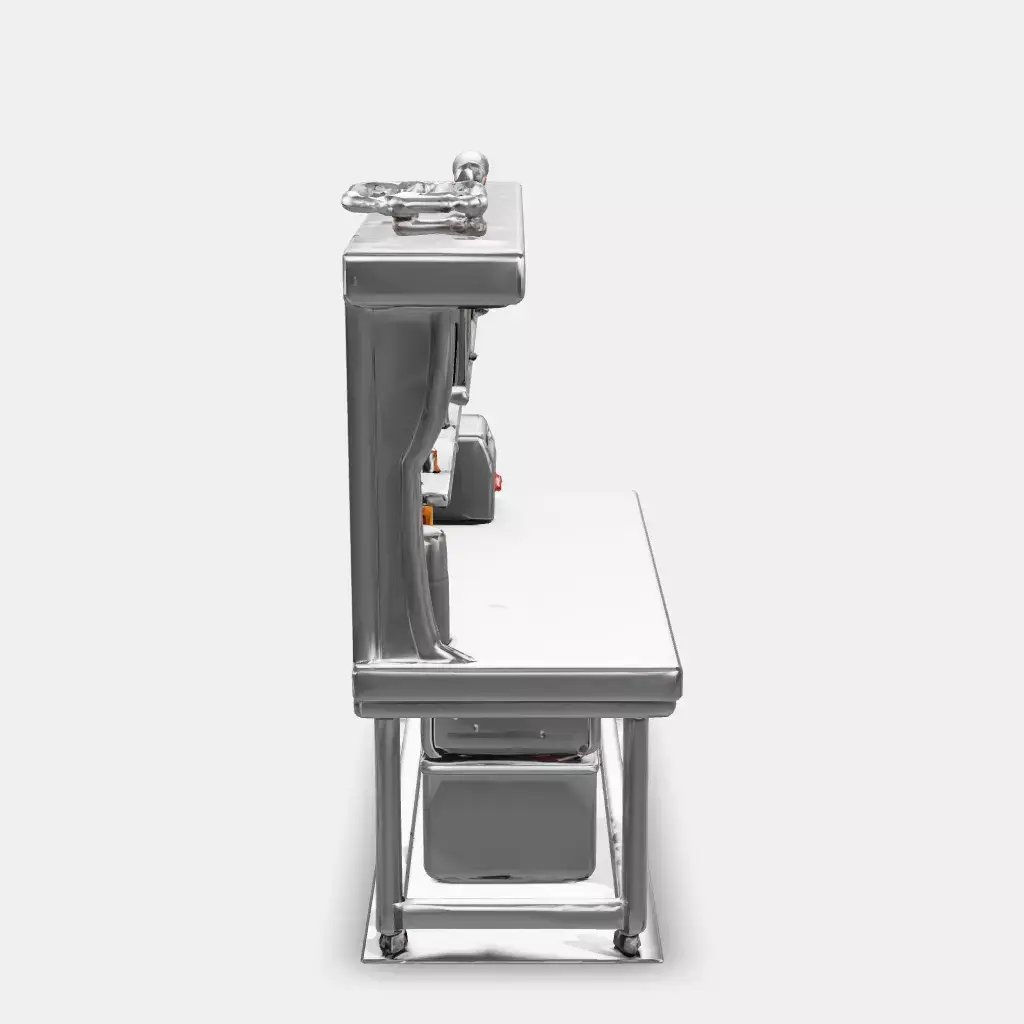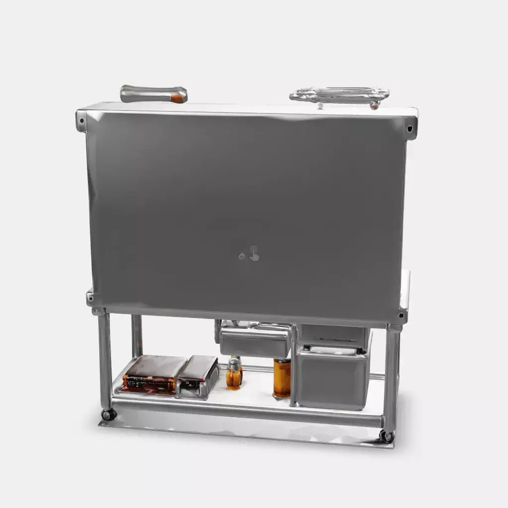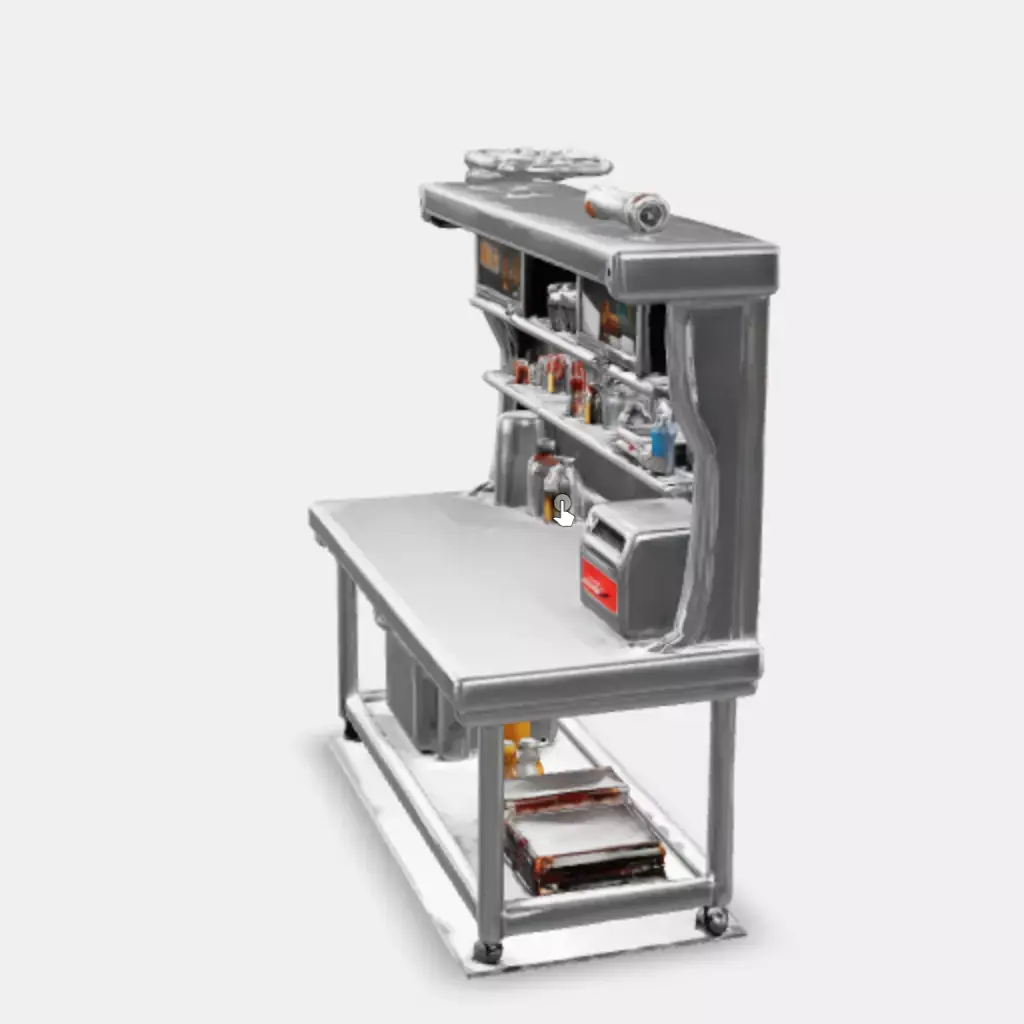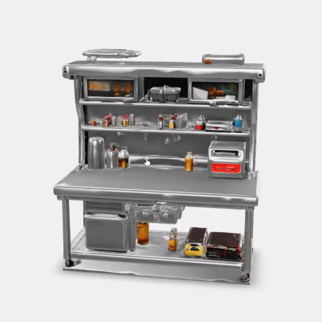 The Metal Laboratory Workbench 3D model features a robust and detailed representation of a metal table, designed specifically for use in games or virtual environments. The workbench is crafted with precision, showcasing a sturdy metal frame and a smooth, textured surface that simulates the look of high-quality lab materials. It includes all necessary components such as legs, tabletop, and optional elements like cabinets or drawers for additional storage. This 3D model is optimized for game development, ensuring a seamless integration into various environments without compromising on performance. The GLB format ensures that the asset maintains its quality while reducing file size, making it an efficient choice for developers looking to maintain high visual standards with minimal impact on loading times. This metal laboratory workbench would be ideal for use in educational or scientific-themed games, virtual reality experiences, simulations, and any scenario requiring a realistic representation of a lab setting. Its versatility makes it suitable for both indoor and outdoor environments within the game world.