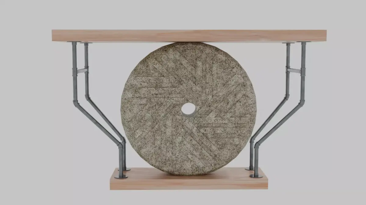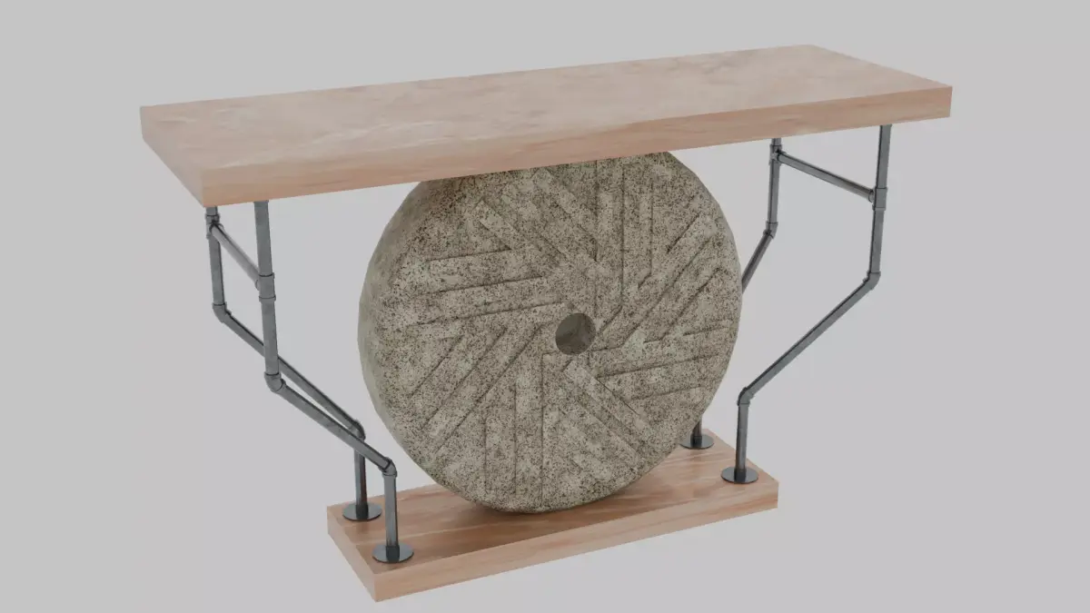 Bring rugged industrial character into your scene with this Industrial Millstone Side Table, featuring a weathered granite millstone sandwiched between two polished marble slabs. The contrast between the rough, aged stone and sleek marble creates a bold, refined industrial look perfect for lofts, workshops, product renders, architectural interiors, or game environments.