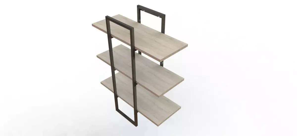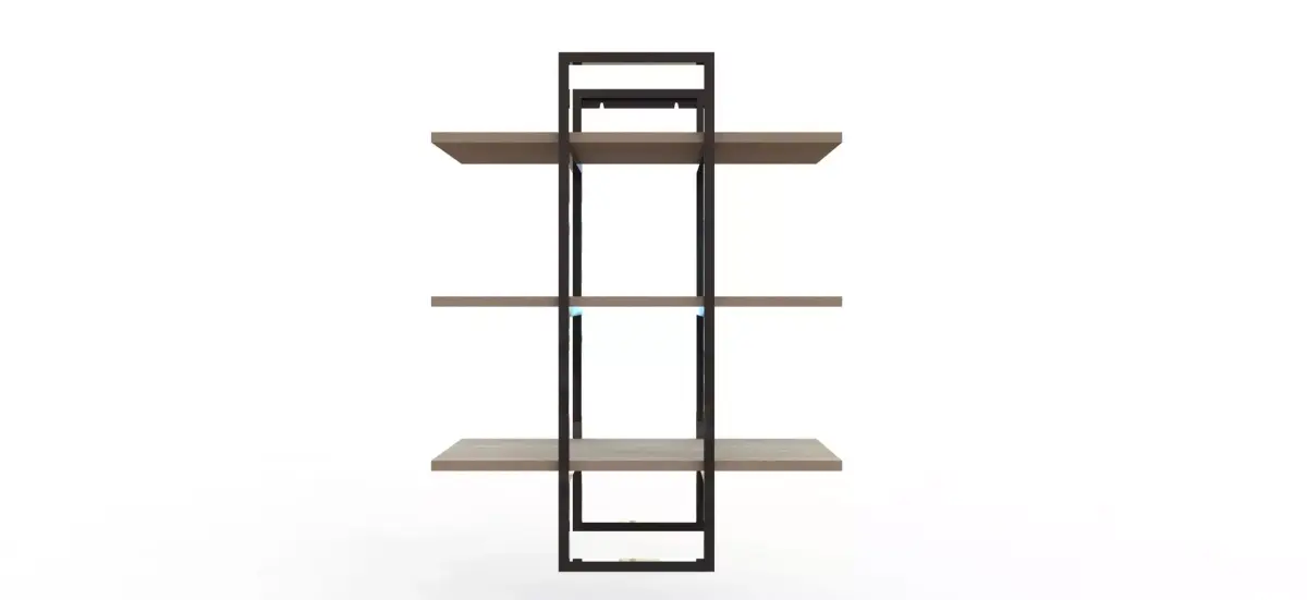 Key FeaturesWelded steel frame using 15×15×2 mm tubing for optimal strength-to-weight ratio.Asymmetric structural layout engineered for rigidity and visual impact.Hidden mounting system for wooden shelves, providing a seamless premium look.Calculated support points ensuring proper load distribution.Simple manufacturing tolerances, no special tools or complex cuts required.Modular, demountable construction for easy transport and reduced packaging volume.Minimal component count, lowering assembly time and production errors.Fully compatible with standard fabrication processes.Customizable dimensions, colors, and wood types without redesigning the structure.