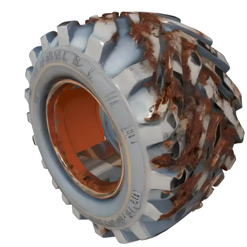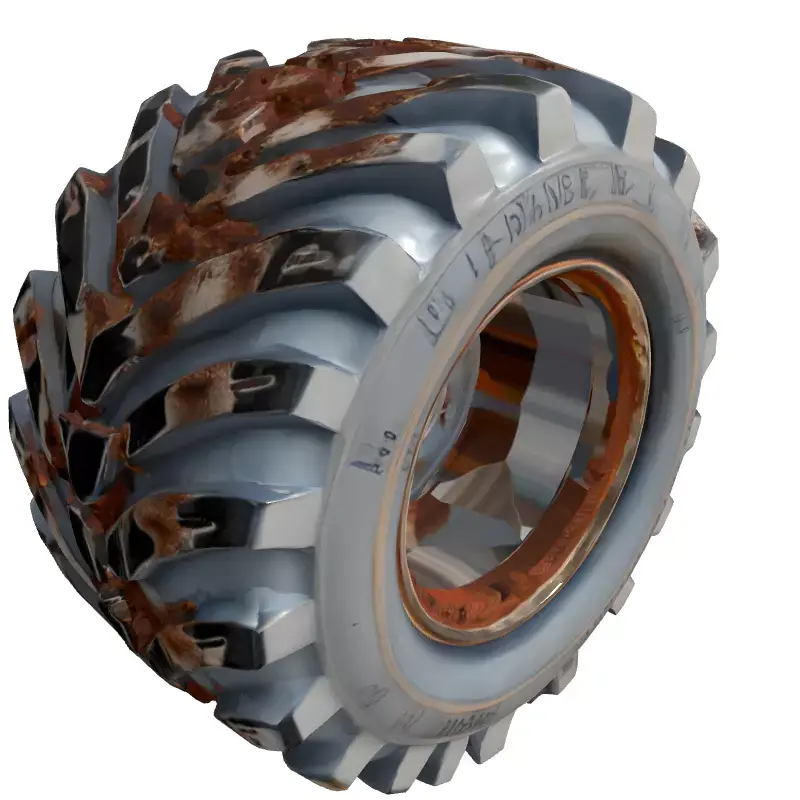 This is a meticulously crafted 3D model of a heavy-duty industrial or off-road tire, featuring a realistic weathered appearance. The model comes complete with a rusty, worn-out rim and intricate mud and dirt accumulation on the aggressive tread pattern, giving it an authentic, field-used look. It is perfectly suited for a wide range of applications, including high-fidelity game development, where it can serve as a detailed vehicle component for trucks, tractors, or construction machinery. Its realistic textures and geometry make it an excellent asset for architectural visualization of industrial sites, agricultural landscapes, or rugged outdoor environments. The model is also ideal for augmented reality (AR) and virtual reality (VR) experiences, providing immersive detail to virtual scenes. Furthermore, digital artists will find this asset invaluable for creating realistic renders and compositions. Optimized for real-time applications, it ensures efficient performance without compromising visual quality, while also being suitable for high-resolution static renderings. Key features include clean topology, UV unwrapped geometry, and high-resolution PBR (Physically Based Rendering) textures that enhance its realism. Supported file formats typically include GLB, OBJ, FBX, DAE, and USD, ensuring broad compatibility across various 3D software and game engines.