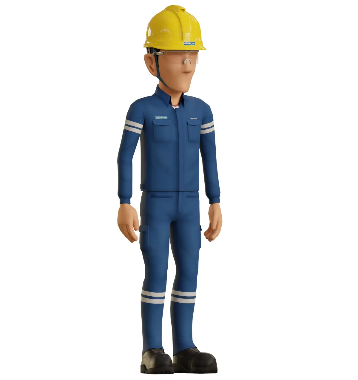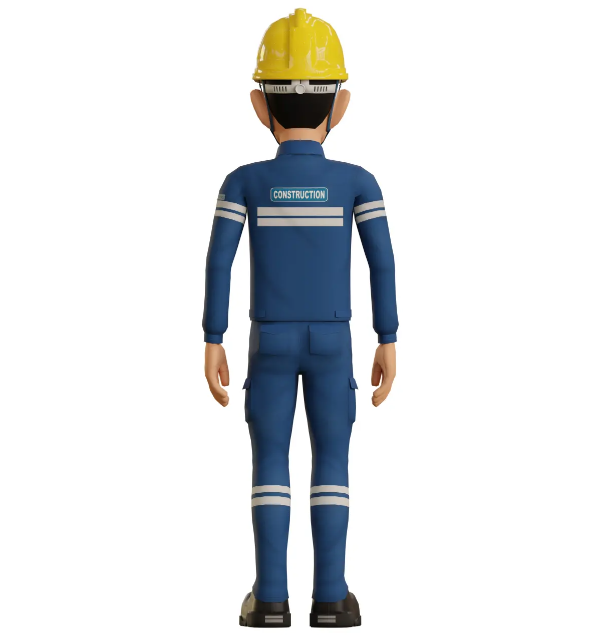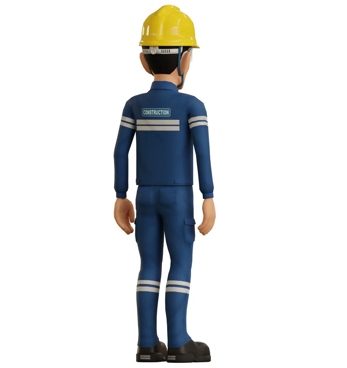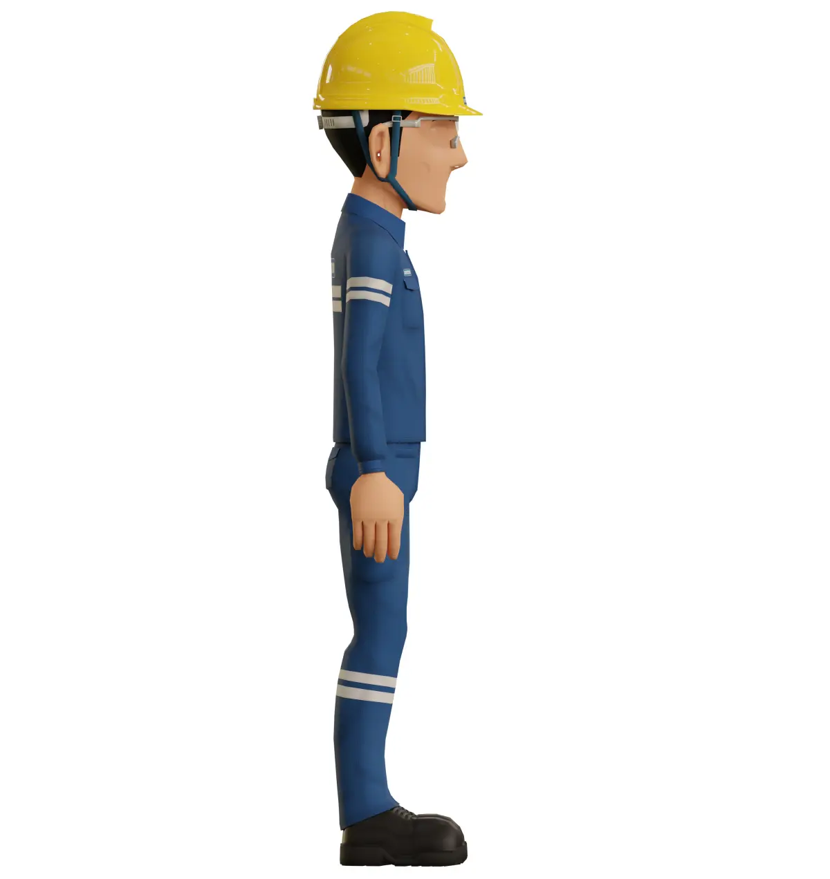 Industrial operator in blue unitform and wearing yellow helmet 3D model