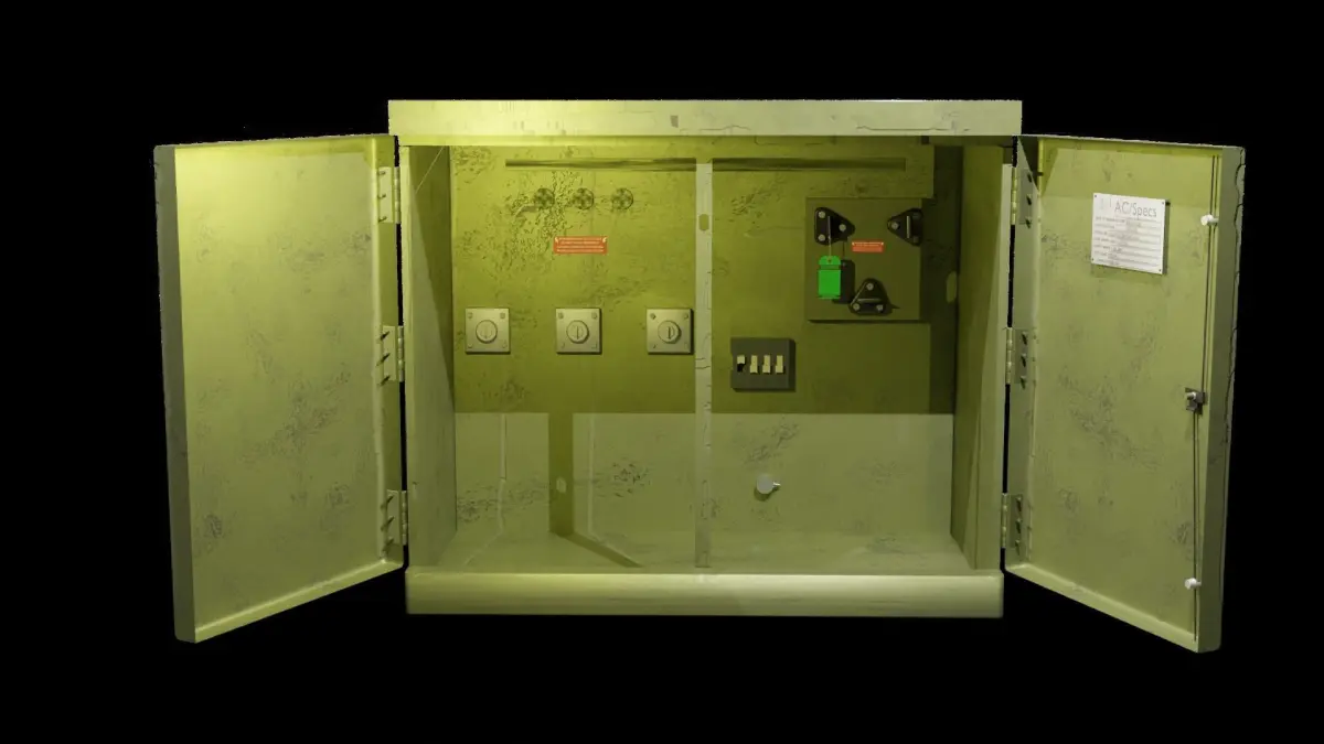 The transformer box features detailed exterior panels with accurate proportions and clean geometry. The doors can be rigged to open, giving you the option to add interactive or animated elements. Additionally, the handle is modeled so it can be animated to turn, enhancing realism in close-up scenes or cinematic shots.