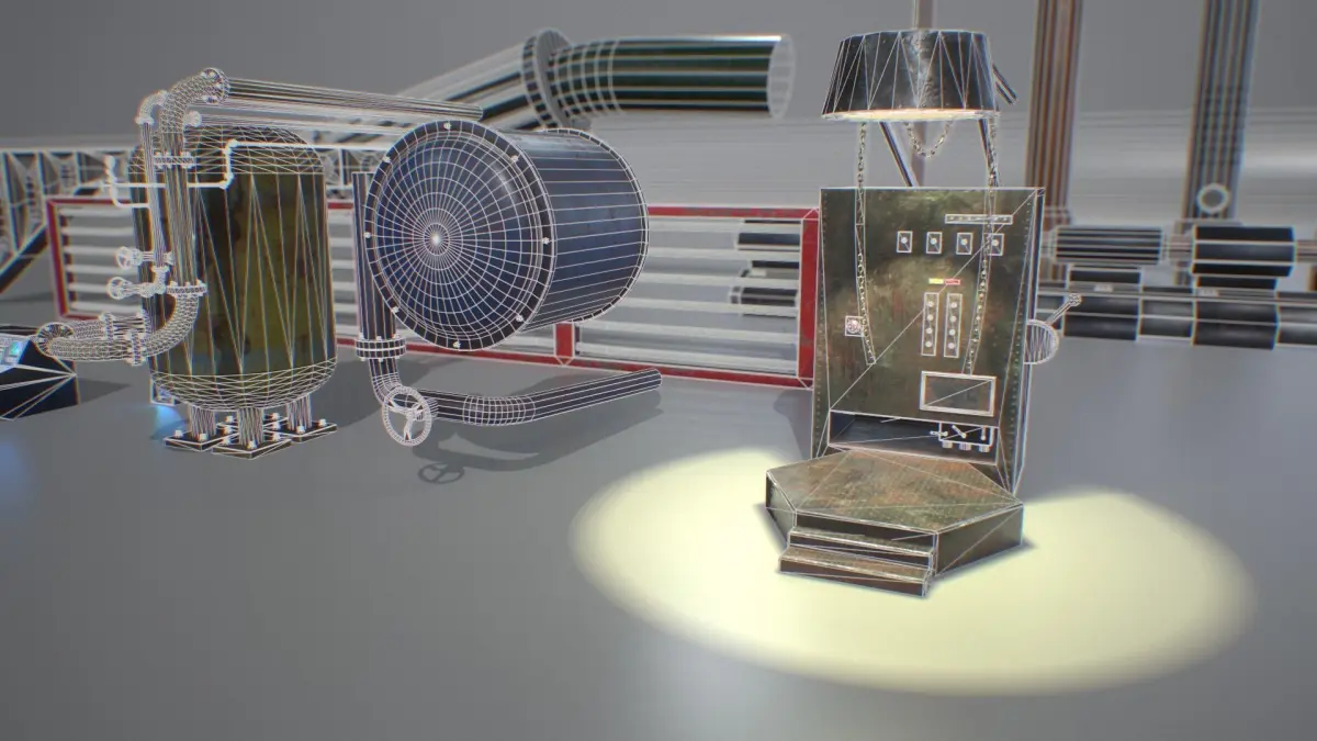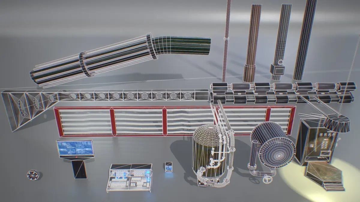 - Pipe D: LOD0: 310 tris (192 verts) and LOD1 134 tris (88 verts)