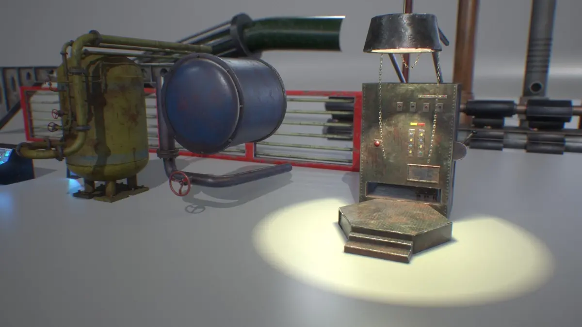 Hydraulic Machine: LOD0: 2938 tris (1729 verts) and LOD1 942 tris (687 verts)