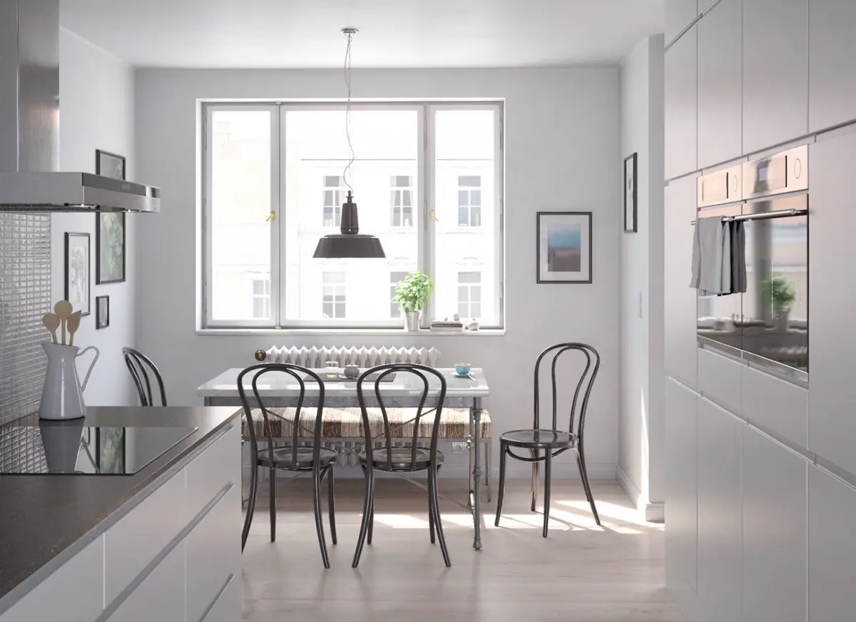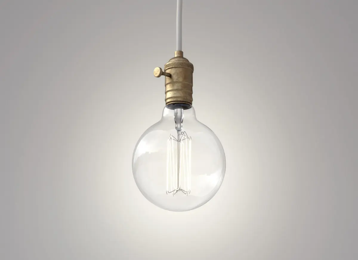 Highly detailed model of an industrial style pendant lamp with a vintage edison bulb.