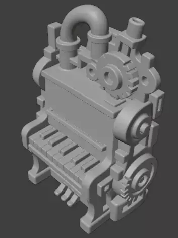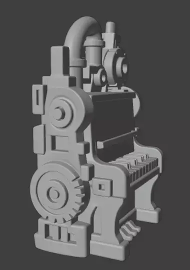 Design ConceptsThis sculpture combines an industrial aesthetic with musical motifs, creating a unique fusion of gears and piano keys.