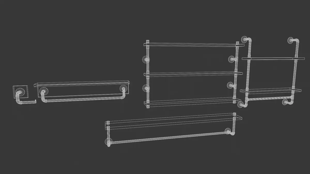 This industrial bathroom set brings rugged charm and practical style to any space. It includes a single shelf, double shelf, and triple shelf for versatile storage, along with a matching towel holder and toilet paper holder. Each piece is crafted from black iron pipe fittings paired with smooth blonde wood shelves, creating a bold contrast that highlights the industrial aesthetic. Perfect for modern lofts, rustic bathrooms, or farmhouse-inspired interiors, this coordinated set combines function and design with a handcrafted, utilitarian feel.