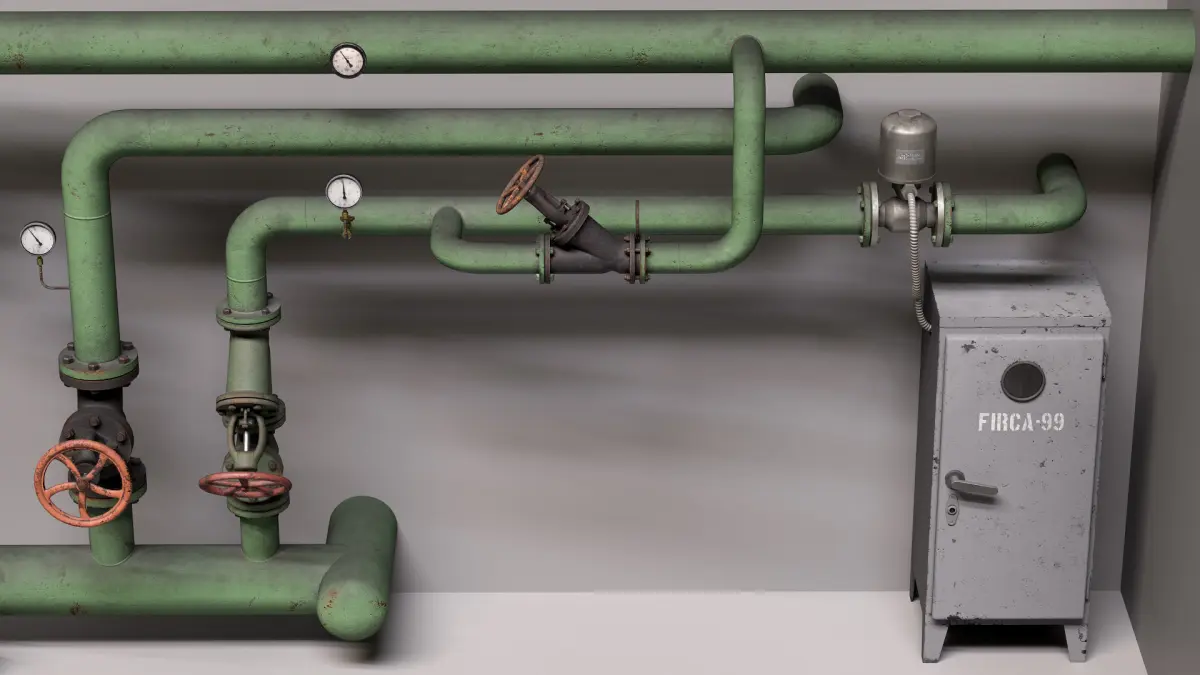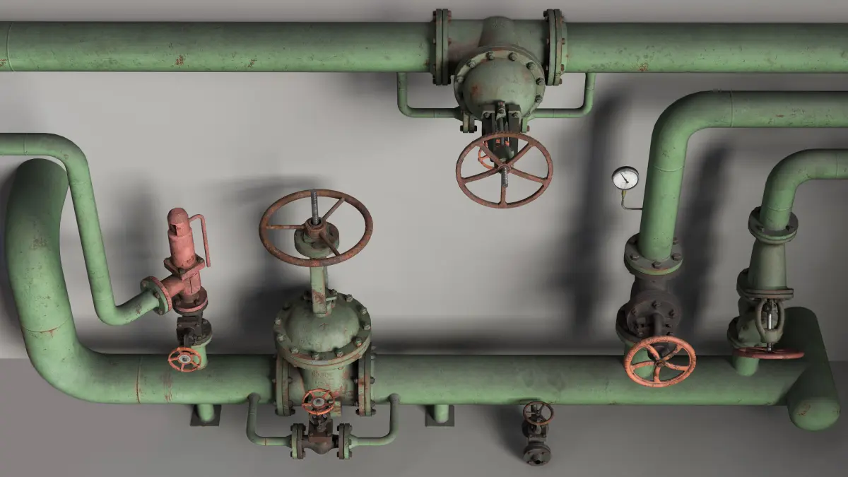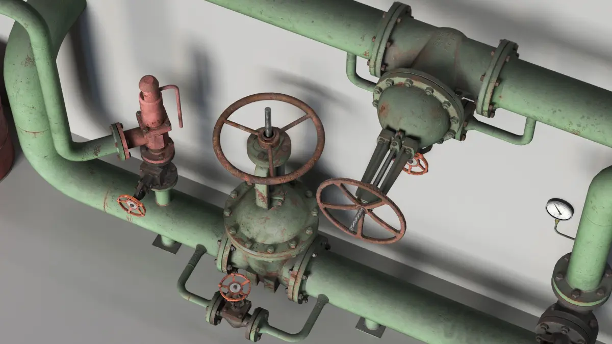 - This is the scene of technological unit consisting of water pipes and valves.