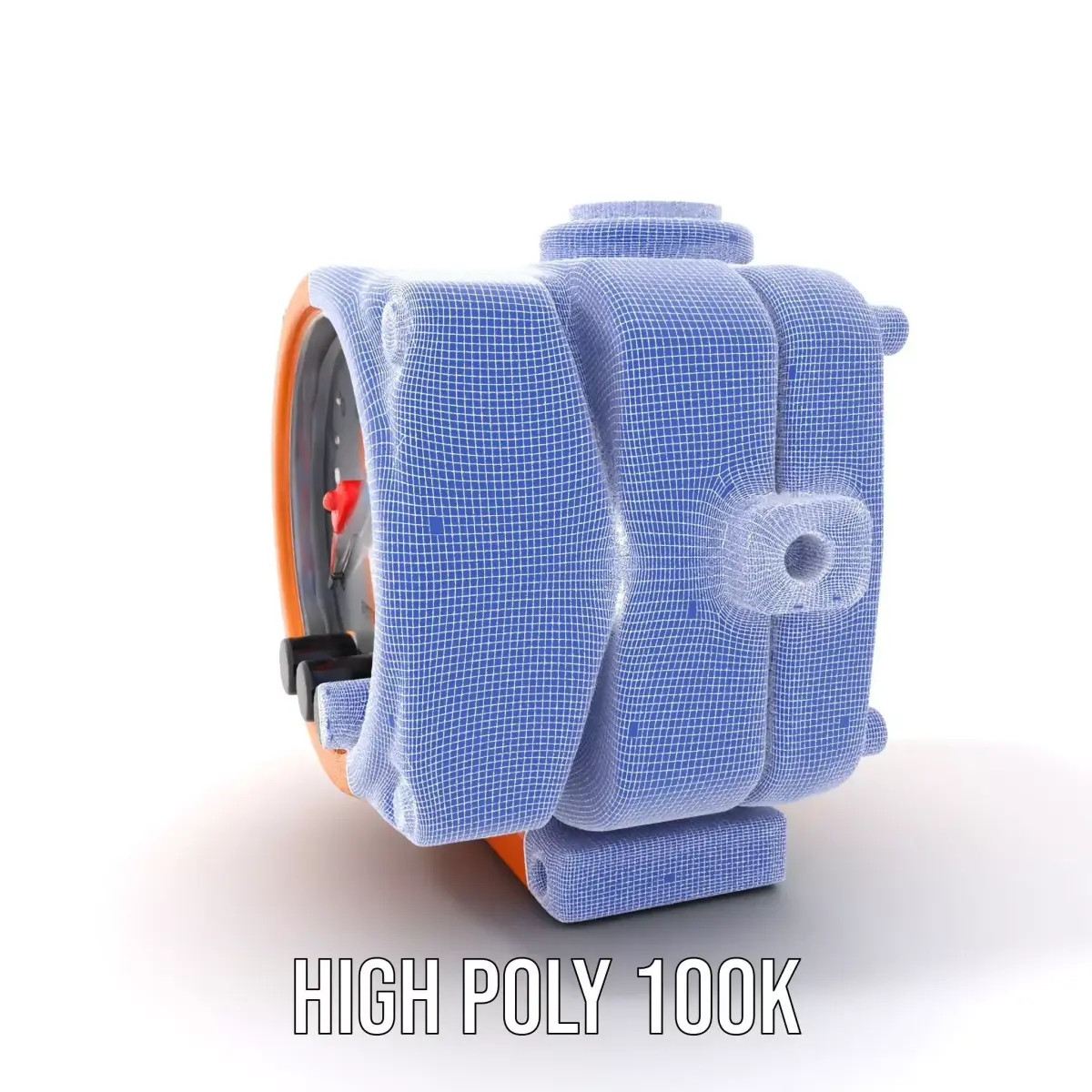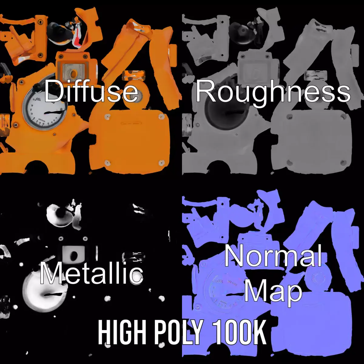 This industrial pressure gauge model pack features a robust orange casing, perfect for adding realistic detail to your projects. Each model has 3 levels of detail: low-poly (1000 triangles for mobile), middle-poly (10,000 triangles for environment), and high-poly (100,000 triangles), which allows for the use of this model in production rendering (such as 3ds Max, Maya, Cinema4D, Blender, Vray/Corona/Cycles and all others), game engines (Unity and Unreal compatible), and interactive presentations, providing a choice of detail based on the LOD System principle. Ideal for use in industrial simulations, technical presentations, and educational tools. The model's textures are PBR, Diffuse, NormalMap, and reflection/roughness/metallic, which are suitable for any modern rendering engine. All models are accurately unwrapped with no overlapping UVs. Textures are 4096*4096 in size. The first image is the reference used for creating the 3D model. It is important to carefully evaluate the quality of the model by examining the preview images that display the topology and polygonal mesh. These previews (WIRE and WEB 3D Preview) clearly demonstrate how accurately the model matches the original reference and how well the geometry has been executed. Please like and leave a comment for the model if you found it useful.