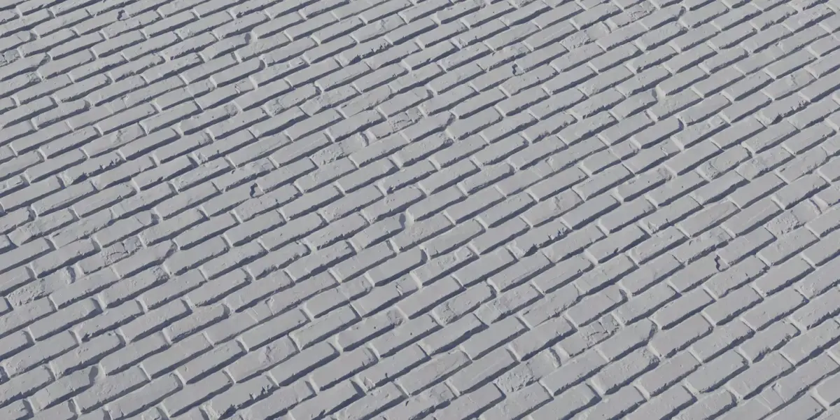Real‑world scale matches standard bricks and mortar; height encapsulates 3–15 mm relief with isolated protrusions, ideal for light tessellation or parallax.