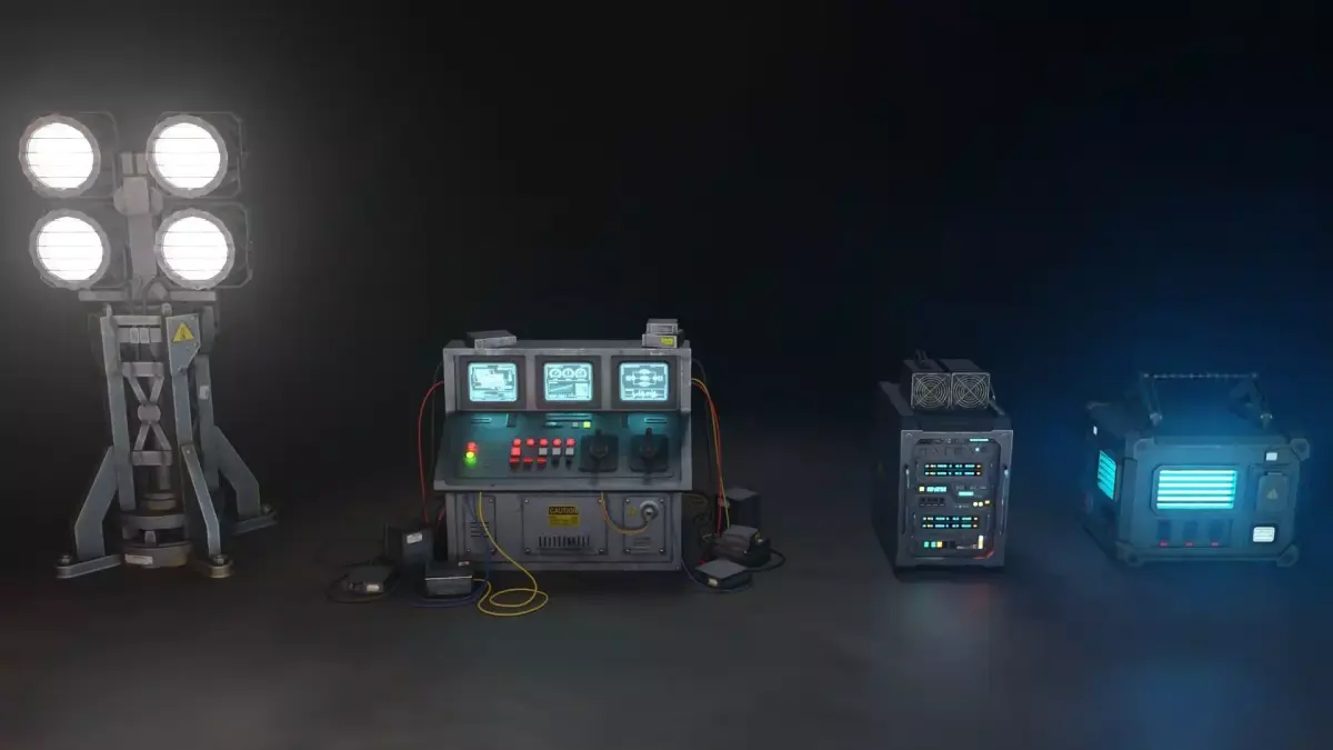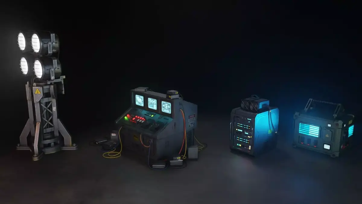 This Sci-Fi Equipment Prop Pack includes four meticulously crafted models — a Control Console, Floodlight Tower, Power Supply Unit, and Data Rack — designed to bring realism and functionality to your futuristic environments.Each asset features clean topology, PBR materials, and emissive elements for dynamic lighting effects. Whether you’re building a research lab, industrial base, or command outpost, this pack delivers the essential machinery to make your scene feel alive and operational.Perfect for games, cinematics, and VR/AR applications — optimized for real-time engines.