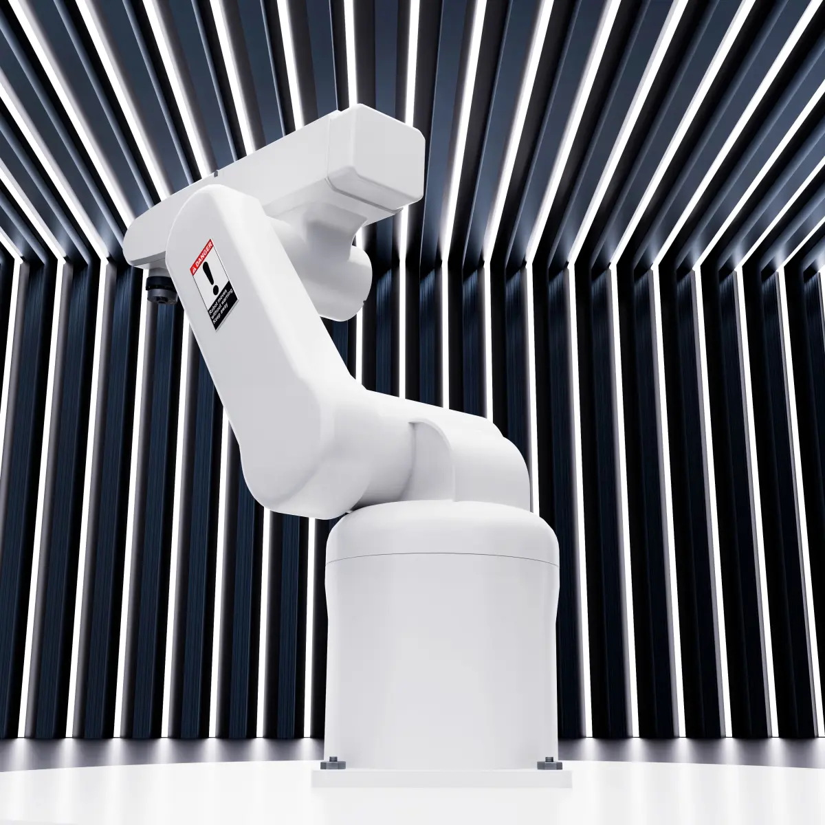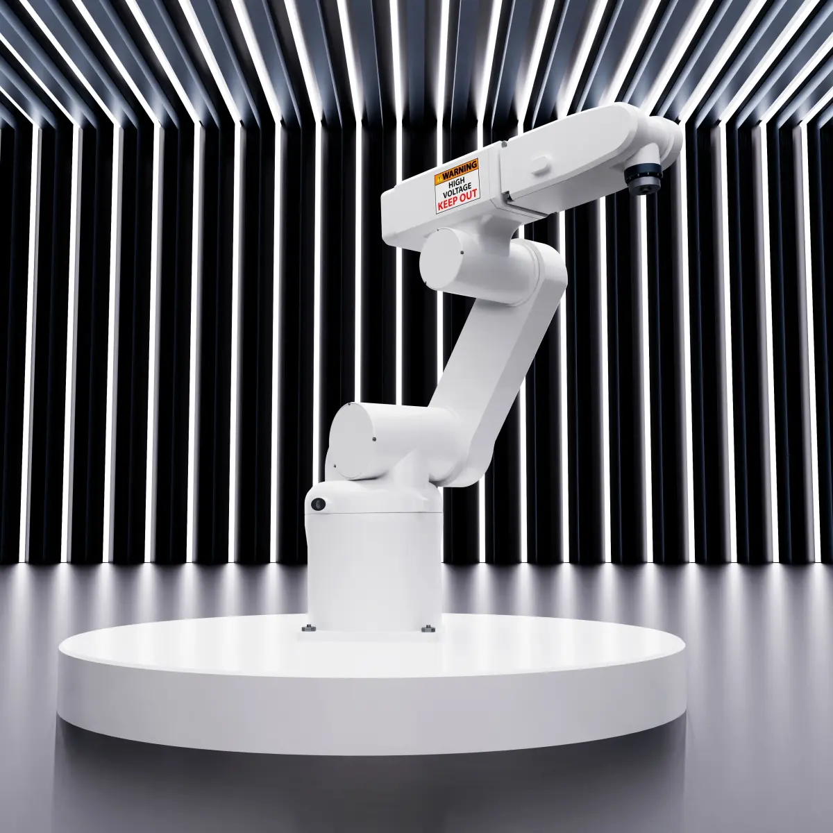Large white industrial mechanized arm. It consists of 5 parts. Created in a minimalist style. Without a podium and all unnecessary details, only a robot in the file