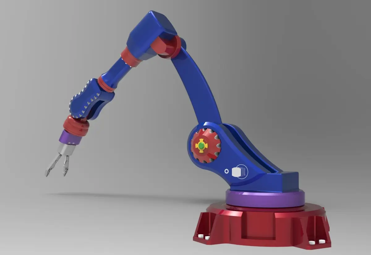 This is a 6-axis robot arm.The table must be fixed on a solid base.Designed for light loads and jobs.The design of the robot was made in solidworks 2020 software.It has outputs in different file formats.You can easily use it in your designs and projects.It can be attached to a different holder and used for different jobs.