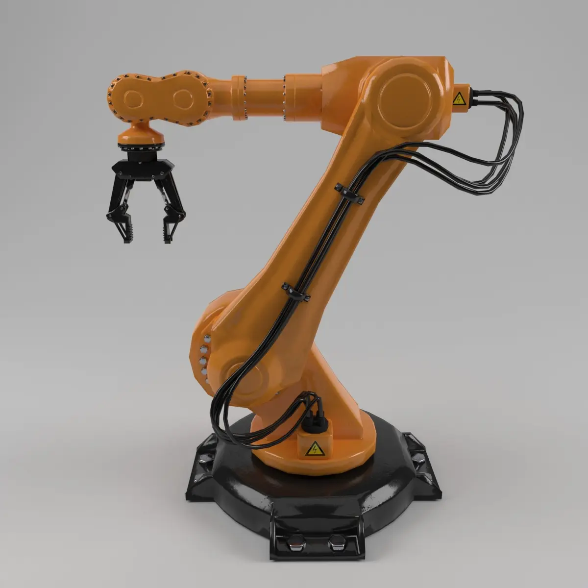 This is a high quality 3d model of an industrial robot arm. It's low poly and designed especially for games and animations. It's fully rigged and PBR textured and it has clean topology. It has good UV unwrapping and UVS are not overlapping. The robot arm is rigged, rendered and modelled in blender 7.9 cycles render. You can also ask me for high poly model or different file formats or more information about this model.