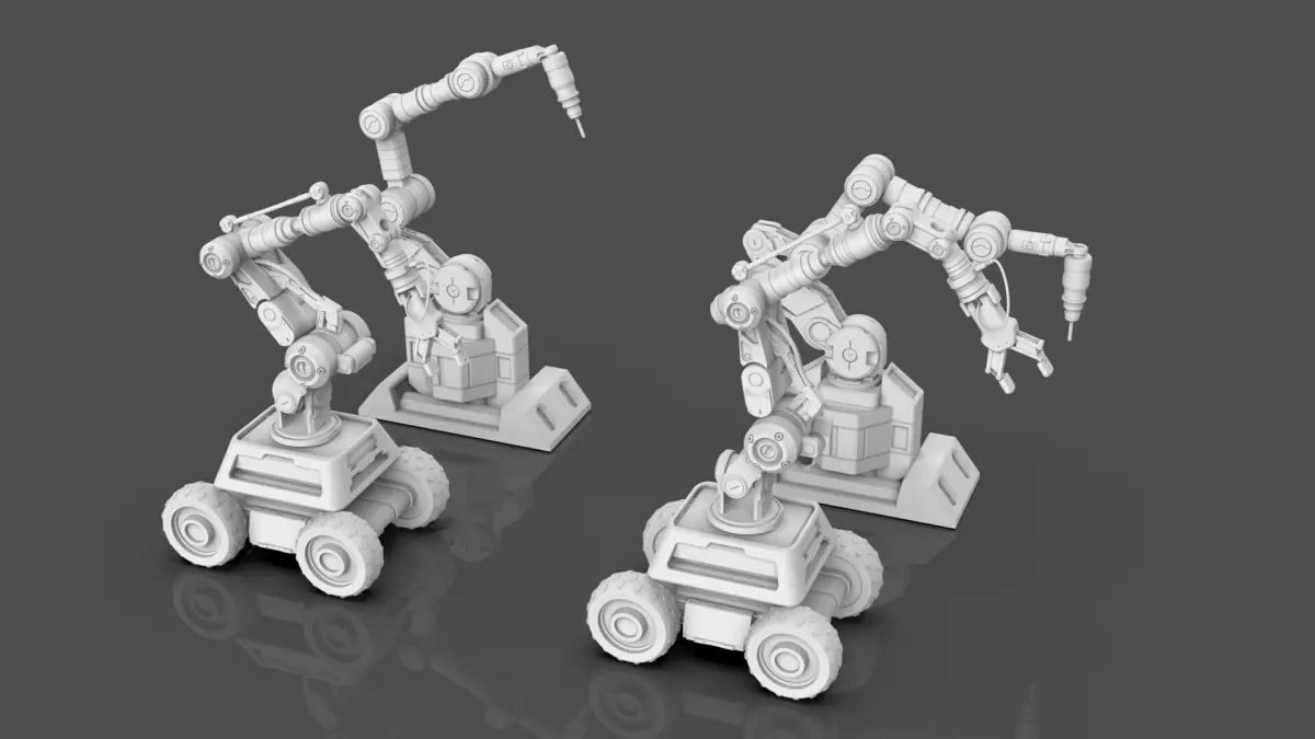 Base Model Pack containing 2 Industrial Robot Arms (Untextured). You can use this model for your games or animation projects or use it as a base for more complex projects. Alternatively, you may use the various parts as Kitbash material as well.