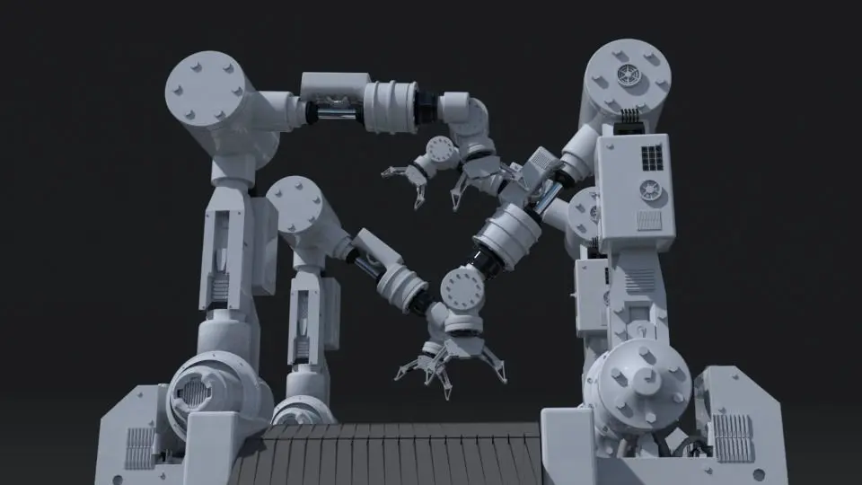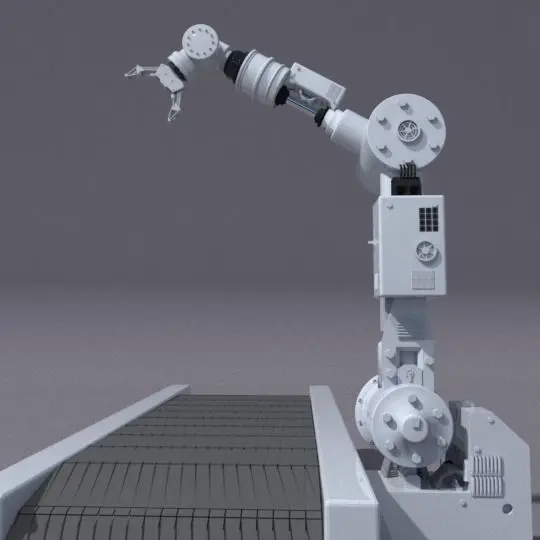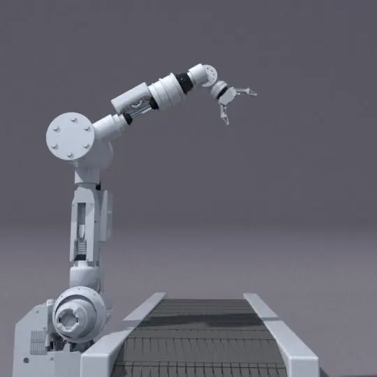 An industrial robotic arm, the type used in factories. Also a belt track which i animated in blender. Great for factory/industrial themes and projects.