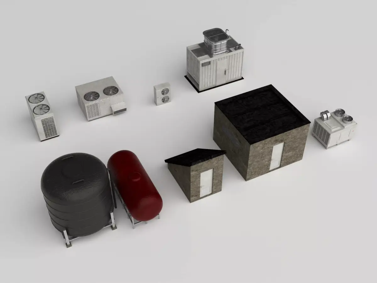 Perfect for creating realistic city rooftops, industrial zones, and technical environments