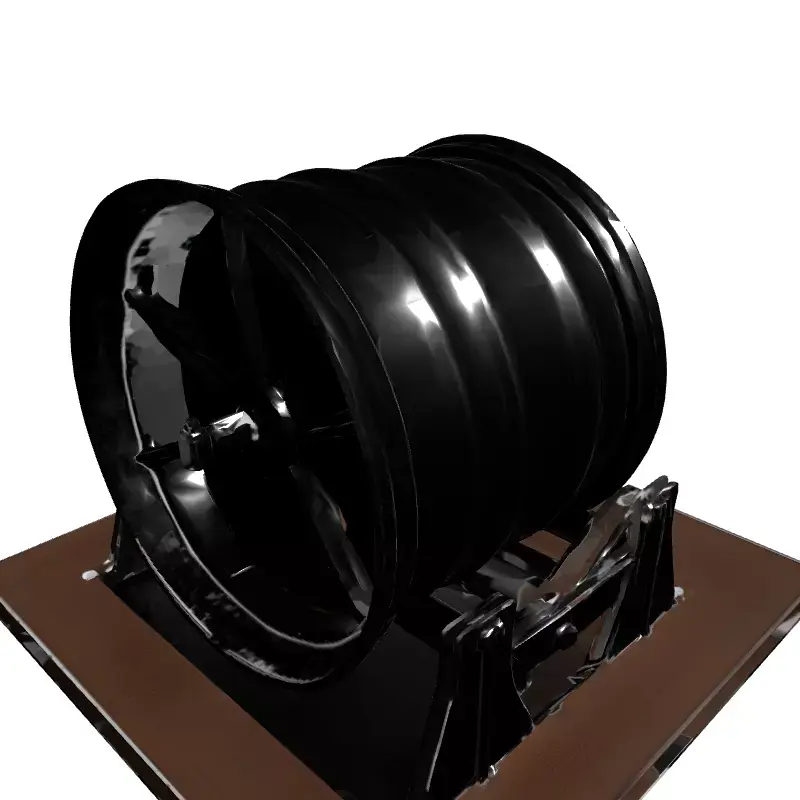 This professional 3D model meticulously represents an industrial rotary drum mixer, designed for efficient blending and processing of various granular materials. Commonly found in agricultural, construction, and manufacturing sectors, this machine is perfect for tasks such as composting, soil mixing, aggregate blending, or powder homogenization. The model features a robust, metallic cylindrical drum with internal baffles, resting securely on a heavy-duty support frame. Its detailed construction makes it an excellent asset for a wide range of digital projects. This asset is ideal for populating industrial game environments, enriching architectural visualization scenes of processing plants or factories, creating compelling product visualizations, or serving as a central piece in educational and simulation applications. The model boasts clean topology, ensuring smooth deformations if animated and facilitating easy modifications. It is designed with high detail to capture realistic industrial aesthetics, making it suitable for high-quality static renderings and pre-rendered animations. With proper optimization, it can also be adapted for real-time applications such as virtual reality (VR) and augmented reality (AR) experiences. It is typically provided with UV unwrapped surfaces and PBR (Physically Based Rendering) textures to deliver lifelike material properties, including metallic reflections and realistic material textures for the drum and support structure, as well as the granular material. Supported file formats include GLB, OBJ, FBX, STL, DAE, ABC, USD, and PLY, ensuring broad compatibility across various 3D software platforms.