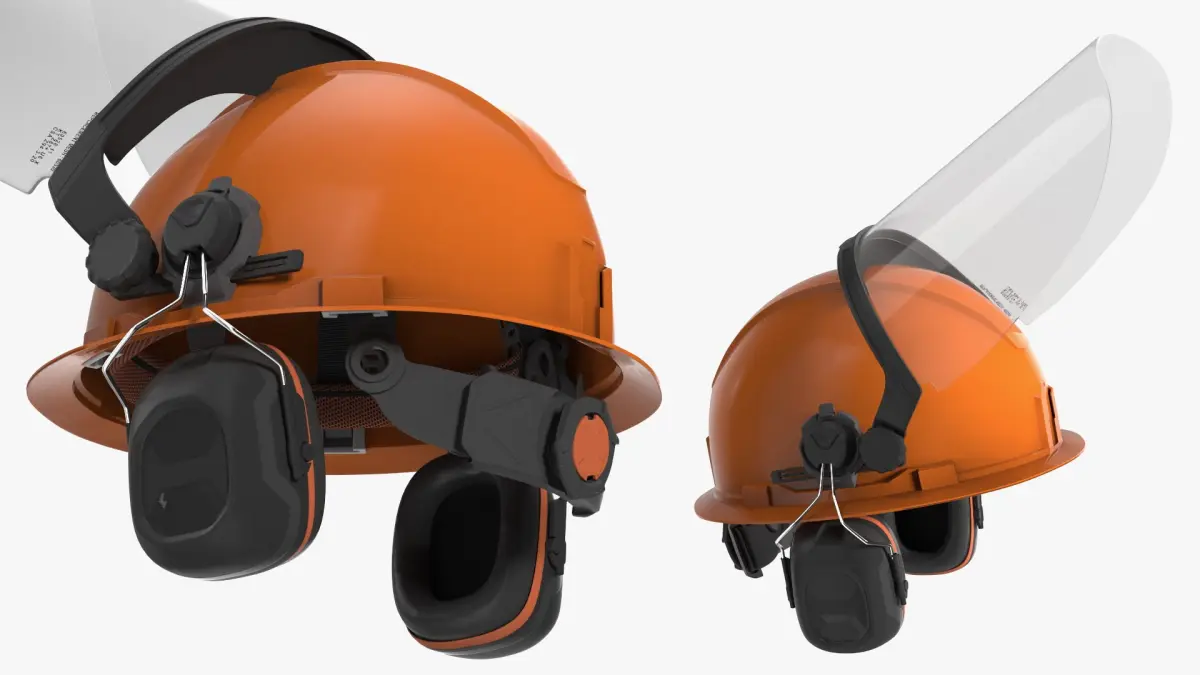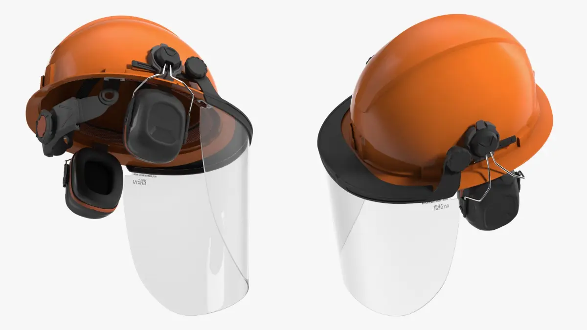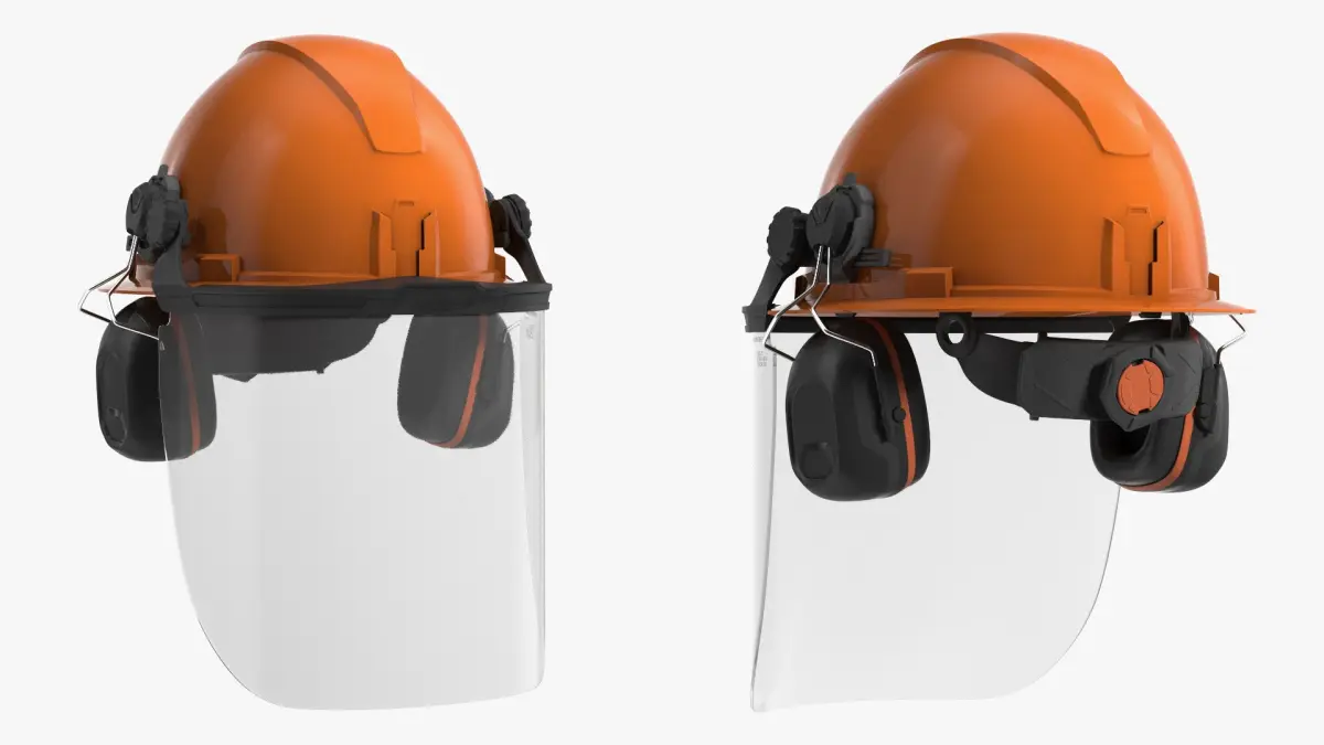 Industrial Safety Helmet with Face Shield Orange is a three-dimensional model of safety helmet designed to provide comprehensive head protection for various industrial environments.