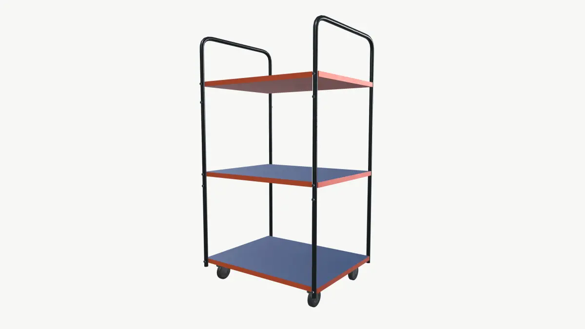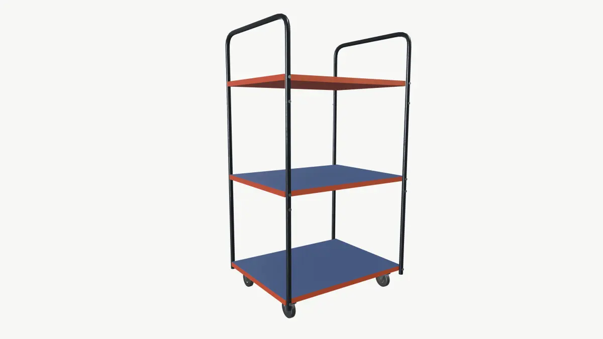 - This three-tier trolley features vibrant blue and orange shelves, expertly crafted to withstand the rigors of daily use in industrial settings.