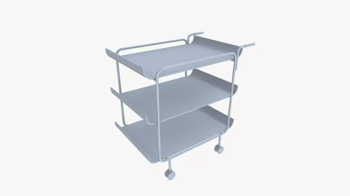 - This versatile 3D model of a trolley with three spacious shelves is the perfect addition to any workspace, kitchen, or retail environment.
