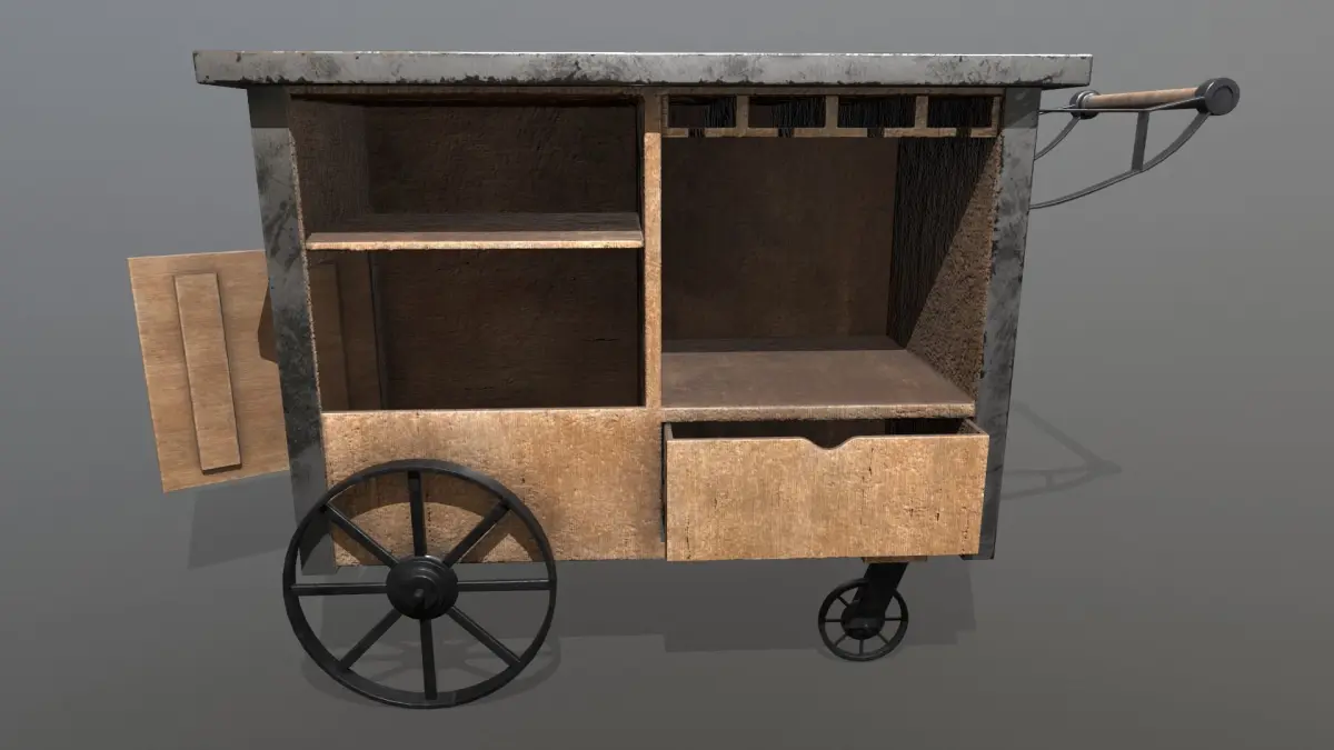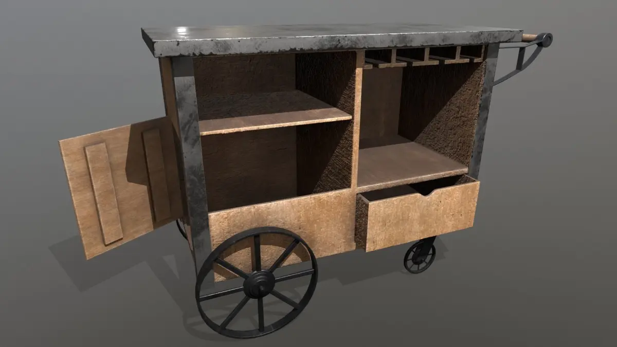 3D Model done in maya 2020 of a Industrial Service food cart, mainly created to carry wine glasses, plates, bottles and your favorite dishes on top