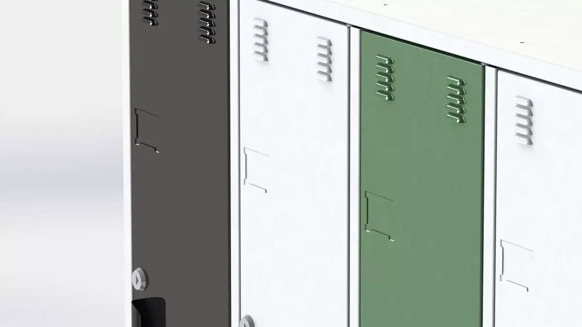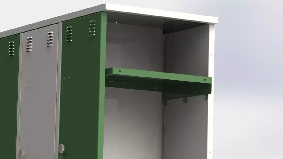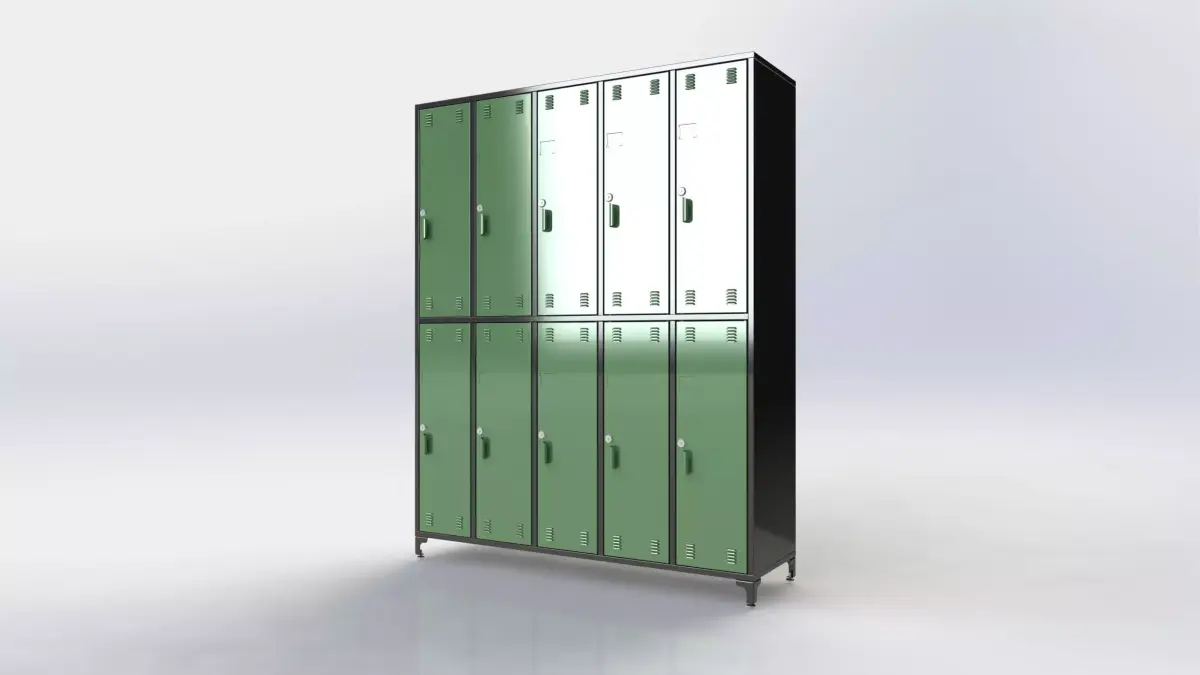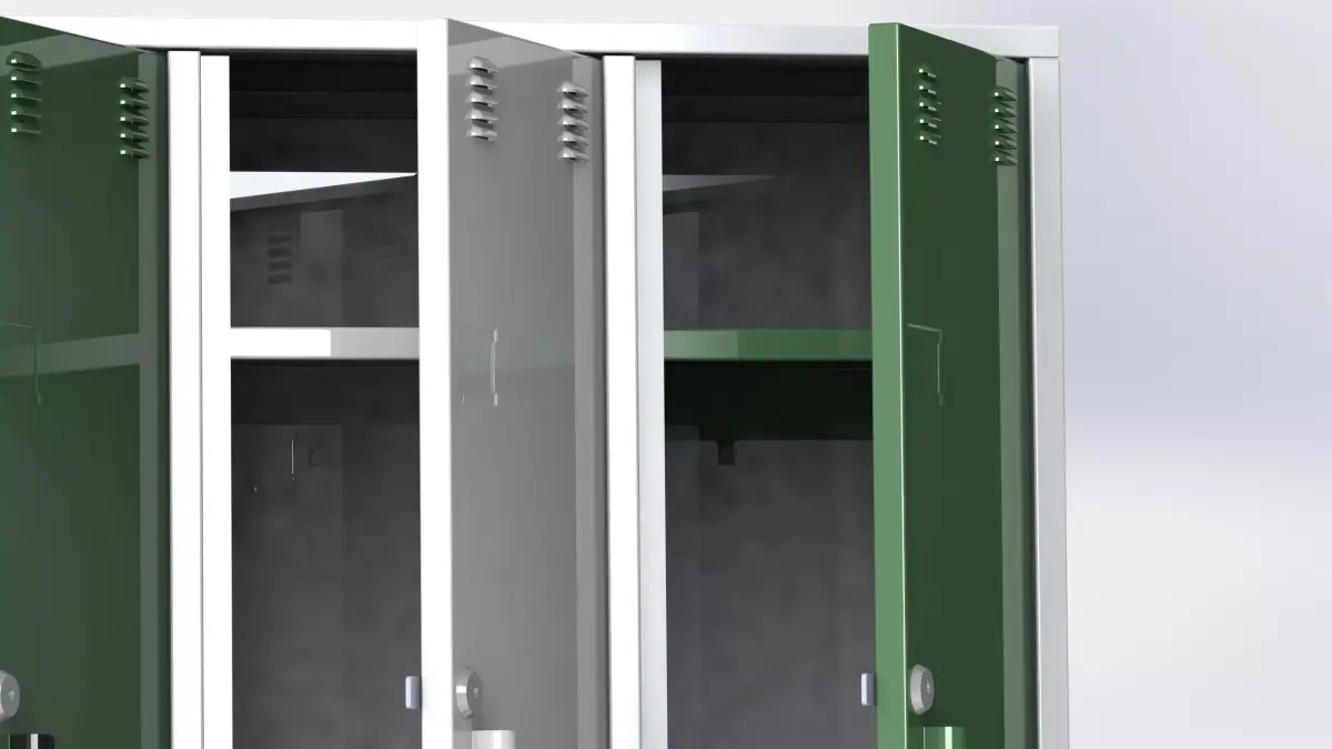 This high‑precision 3D model represents a large industrial storage cabinet built from 0.8 mm galvanized sheet metal, engineered for real‑world fabrication, assembly, and technical visualization. The structure is designed for durability and industrial use, featuring mechanically assembled components and accurate sheet‑metal geometry suitable for CNC cutting, bending, and production workflows.