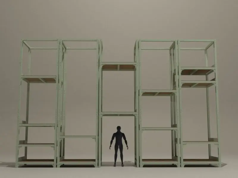 1910 industrial shelf architecnonic art nouveau, art decò5 shelf compositions, movable shelfs, completely custumable in heigth and materials poly obgects, light file eady to custom.max .obj .stl file low poly