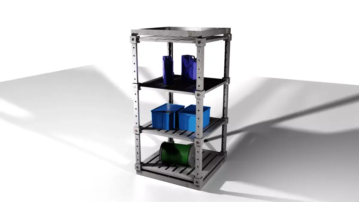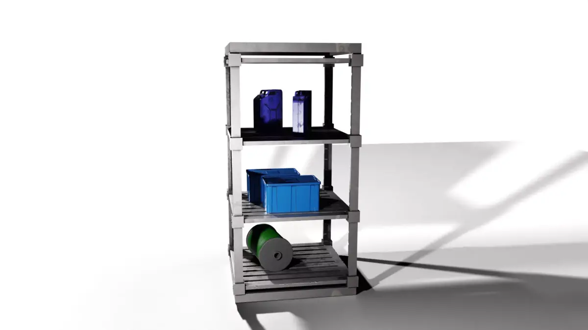 The shelving frame itself is built from simple metal beams with reinforced corners and cross-supports, giving it an authentic industrial look while keeping the geometry efficient. The entire asset is optimized for real-time rendering and suitable for games, simulations, VR scenes, or background props in industrial environments.