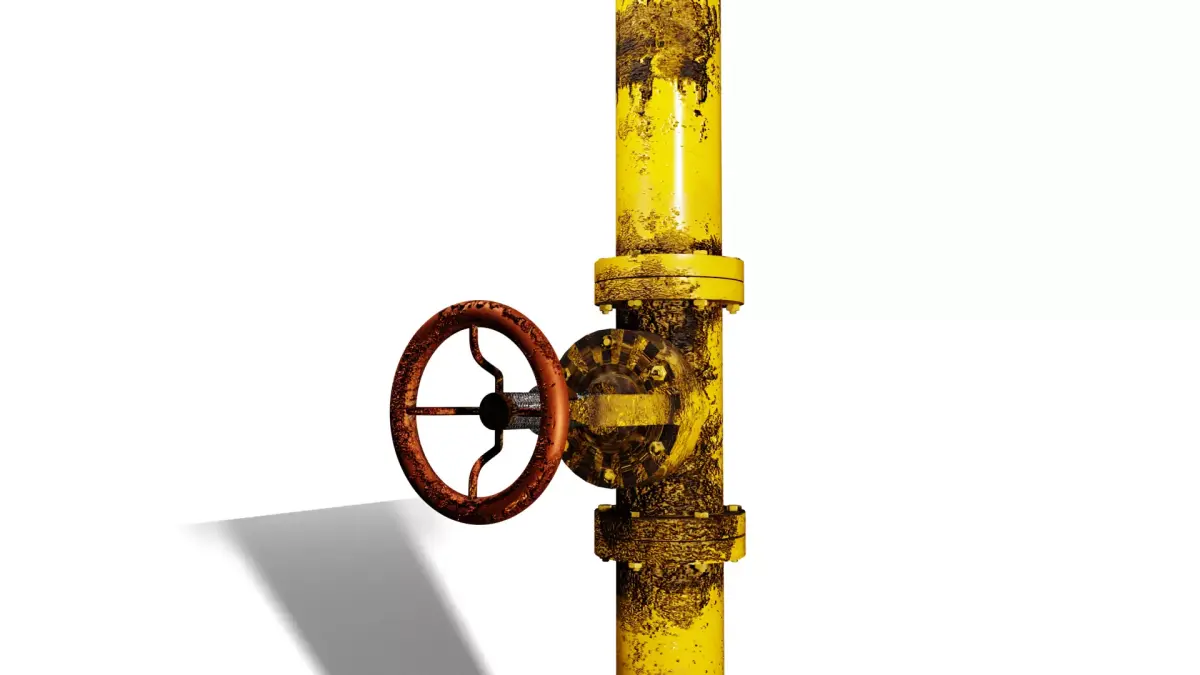 This is a high-detail 3D model of an industrial shut-off valve assembly, meticulously modeled in Blender and textured in Substance Painter. The assembly features a manually-operated wheel shut-off valve integrated into a section of industrial pipe, capturing realistic mechanical features and proportions—ideal for visual presentation, technical illustration, or integration into larger industrial environments.