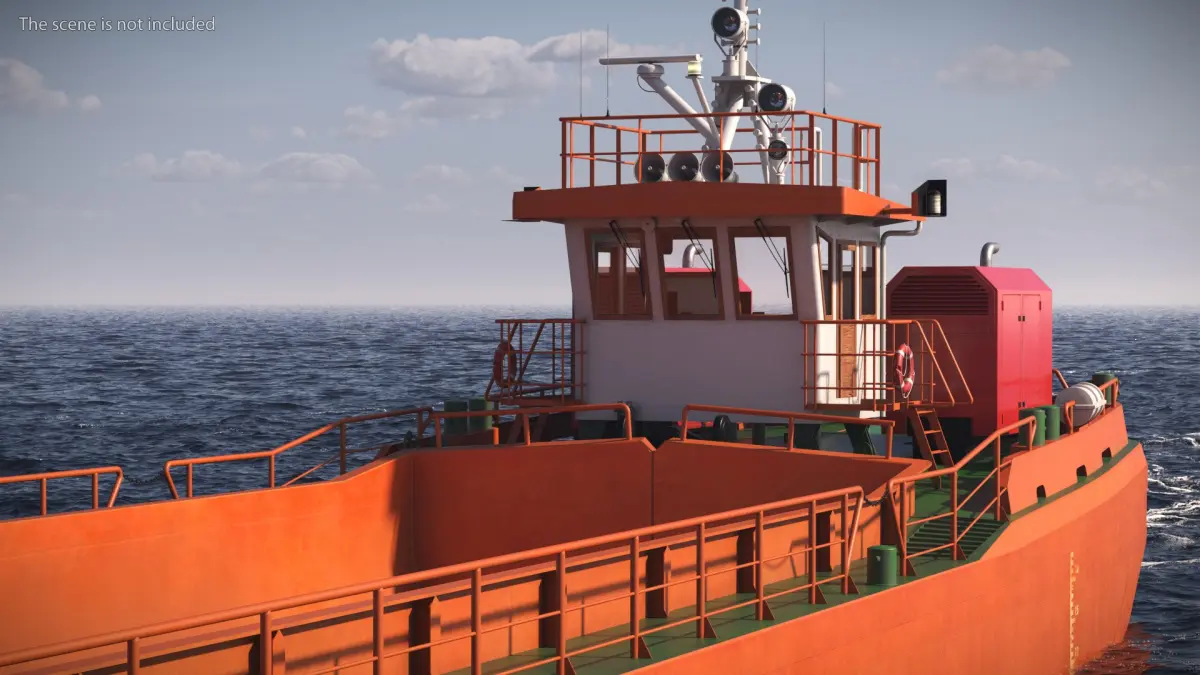 Industrial Split Barge Empty State Orange Rigged for Maya is a three-dimensional model of split hopper barge that is type of the hopper barge with doors in the hull, which dumped its cargo by opening these doors (splits longitudinally between the end bulkheads).