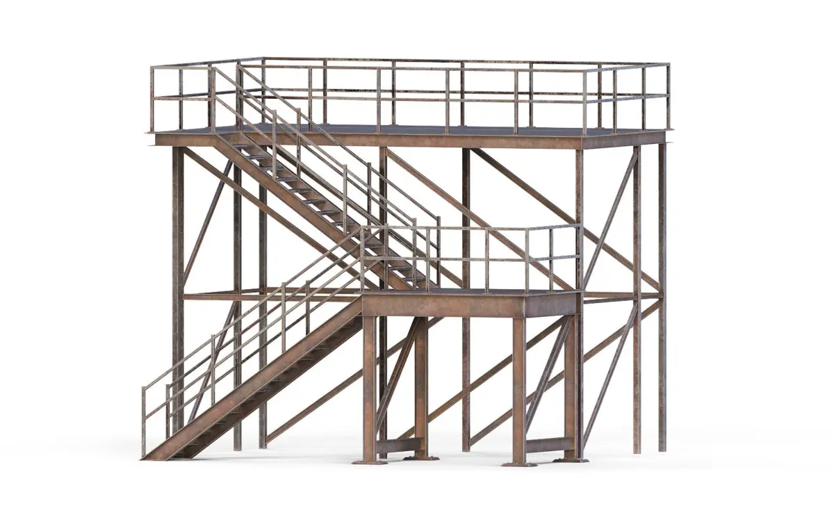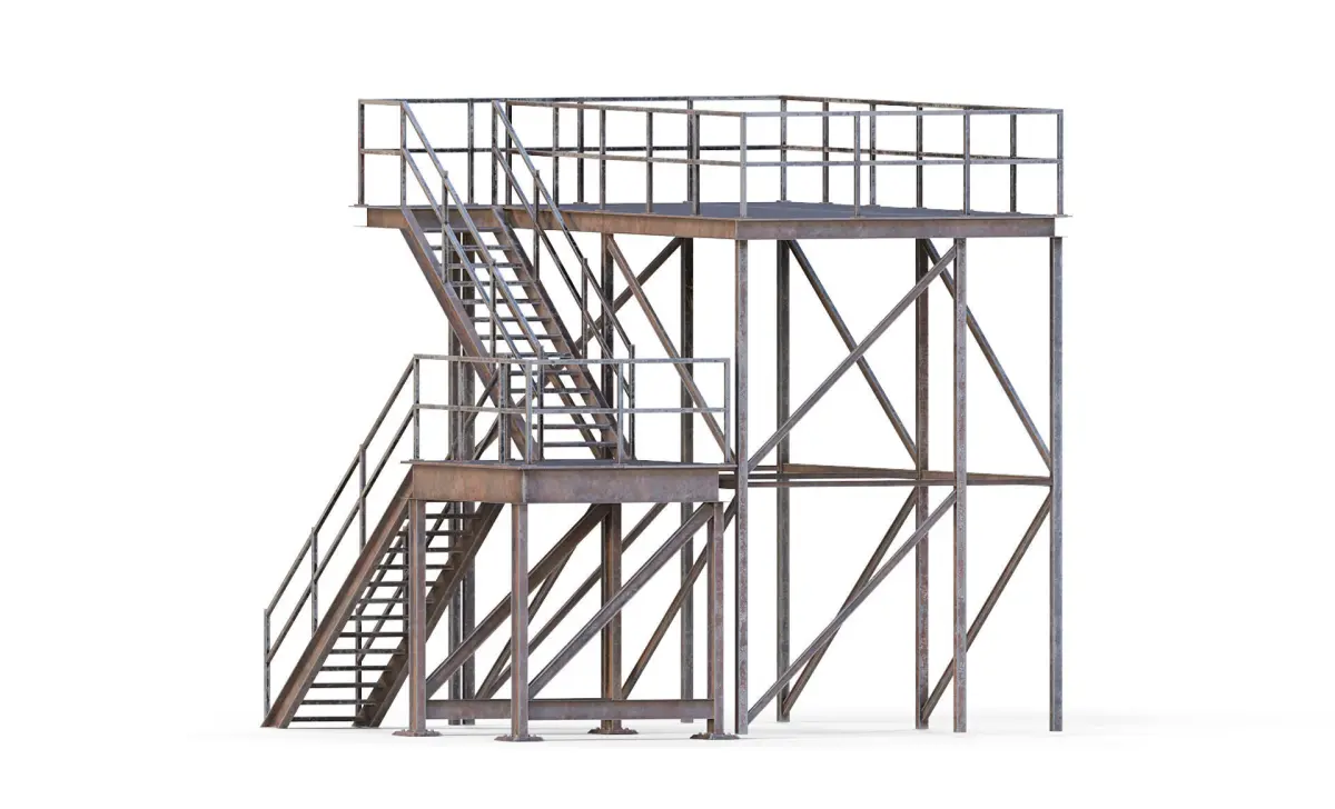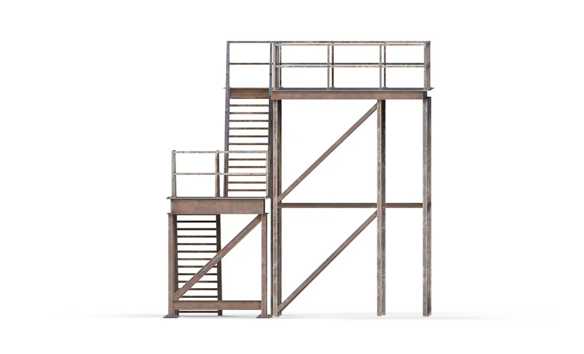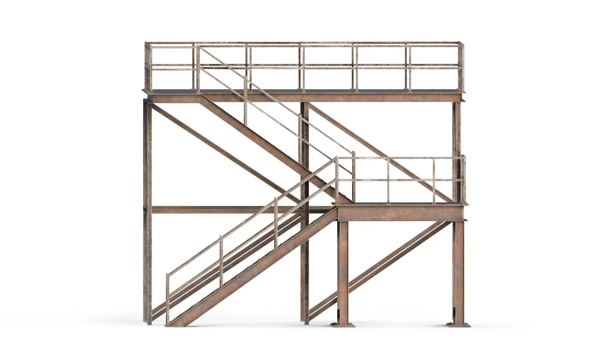 Realistic 3D model Industrial stair.This model consists of the correct geometry, details and textures.3D model ideal for 3D-photorealistic visualization.Textures of the format 'PNG', size is 4096x4096.TEXTURES: Base color/Metallic/Roughness/Height/Normal/.Unpack the format that you need, and run it in a 3D editor.