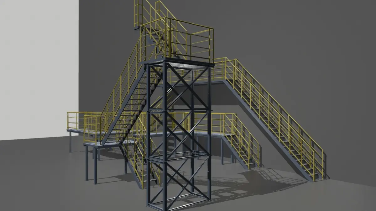 Realistic pack of industrial stairs. 26 pieces to make any kind of stairs. Realistic scale.