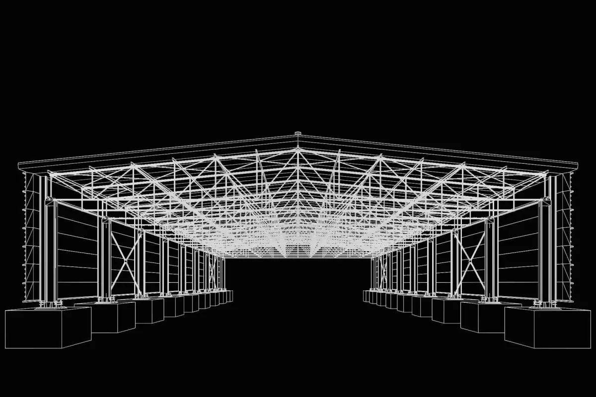 Industrial steel truss hall that I designed and calculated during architectural studies on CTU in Prague. Added some basic materials (mostly just Principled BSDF with color and 1 concrete material for collumn footers). You can download some basic non-vector technical drawings with it.All real world scale and possible to build in real life.