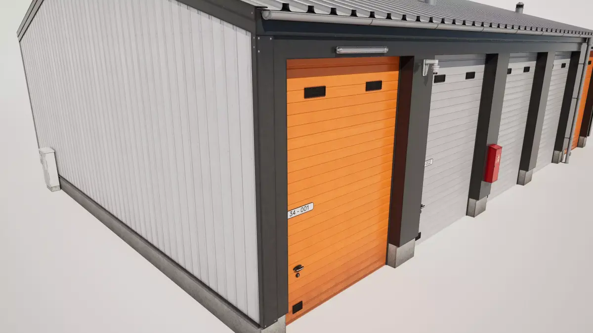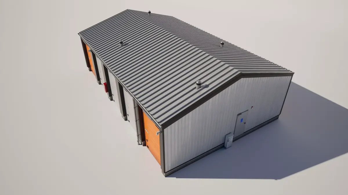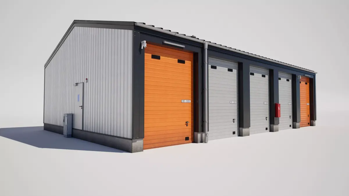 Detailed model of a industrial storage garage building