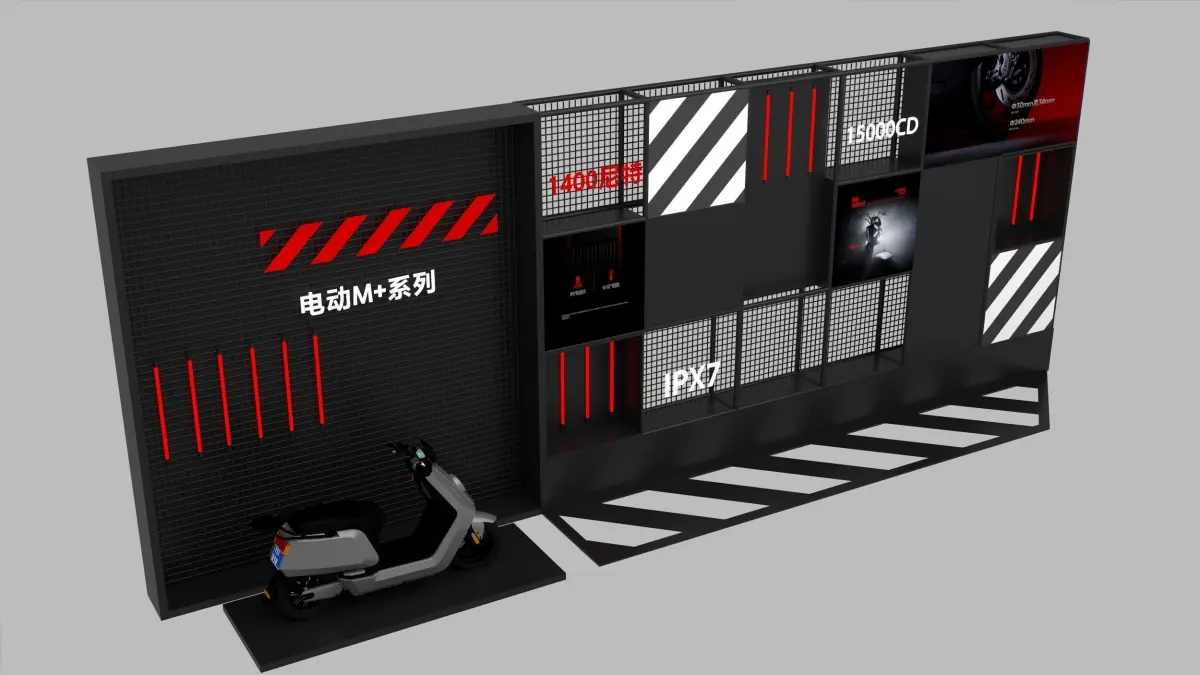 This industrial-style display rack combines metal structures, wire mesh panels, and light tube accents, creating a fusion of technological and industrial aesthetics.