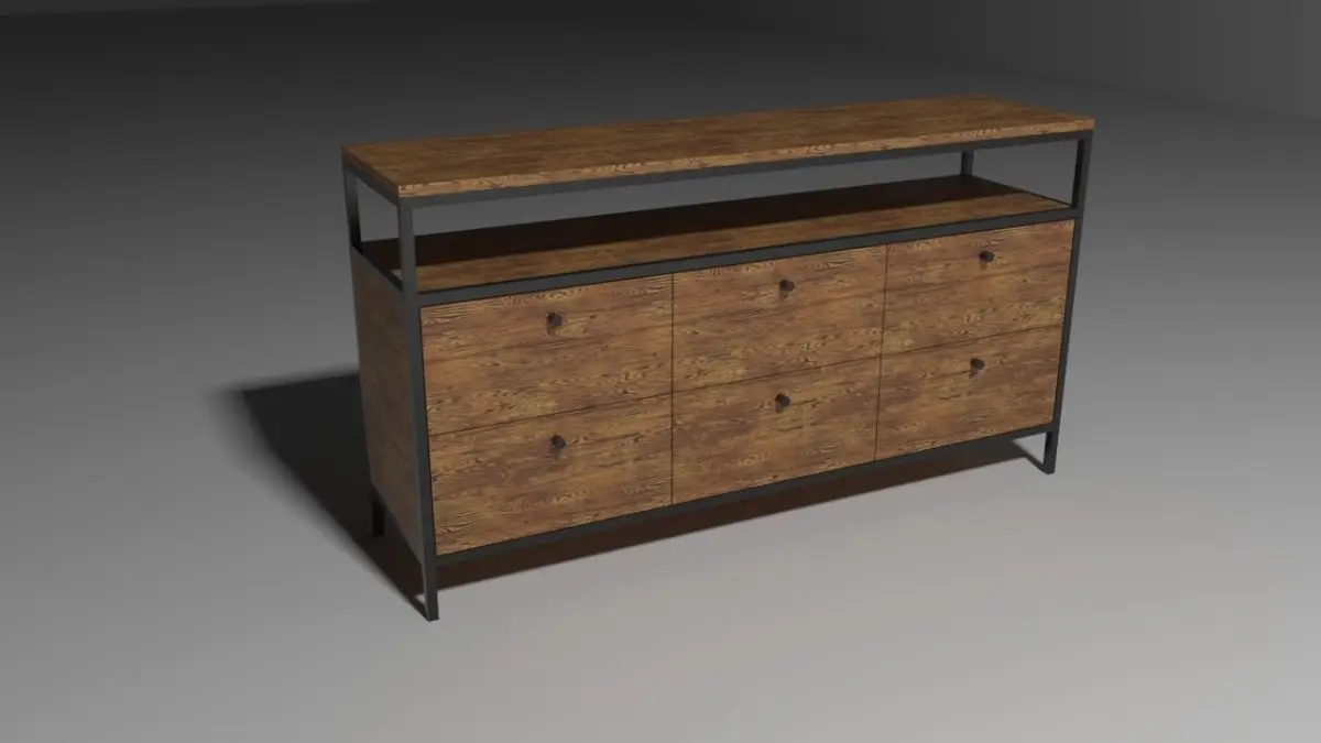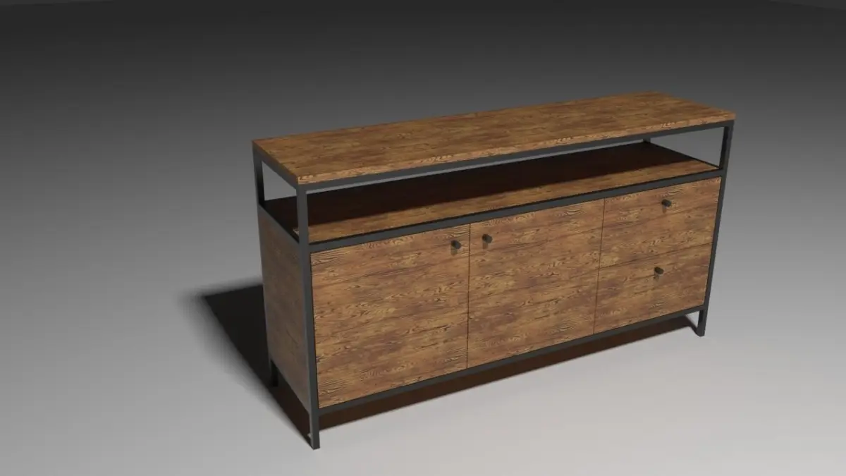 Comod industrial style available in 2 different shapes, with 6 drawers or 2 drawers and 2 doors.The structure is black painted steel with drawers, doors and shelf in oak wood.