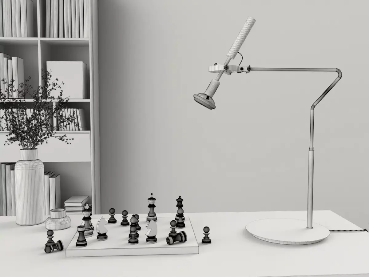 A highly detailed 3D model of a classic chess set and a decorative table lamp. Modeled in 3ds Max 2023 and rendered with V-Ray 6.0. This package includes fully textured materials, realistic lighting setups, and basic animation, meticulously replicated from physical references with over 90% accuracy. Ready for rendering and animation projects.