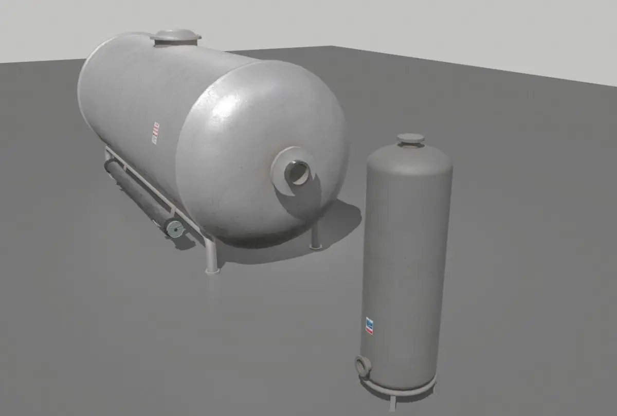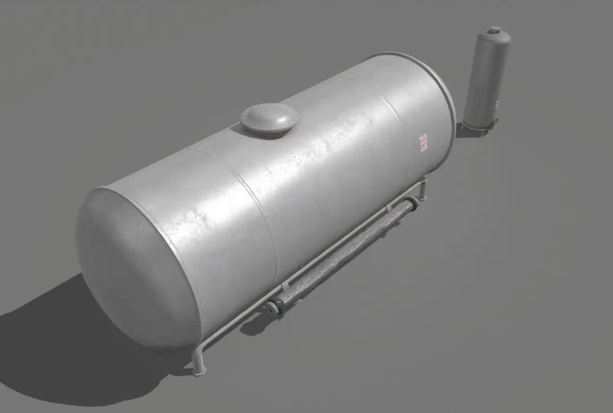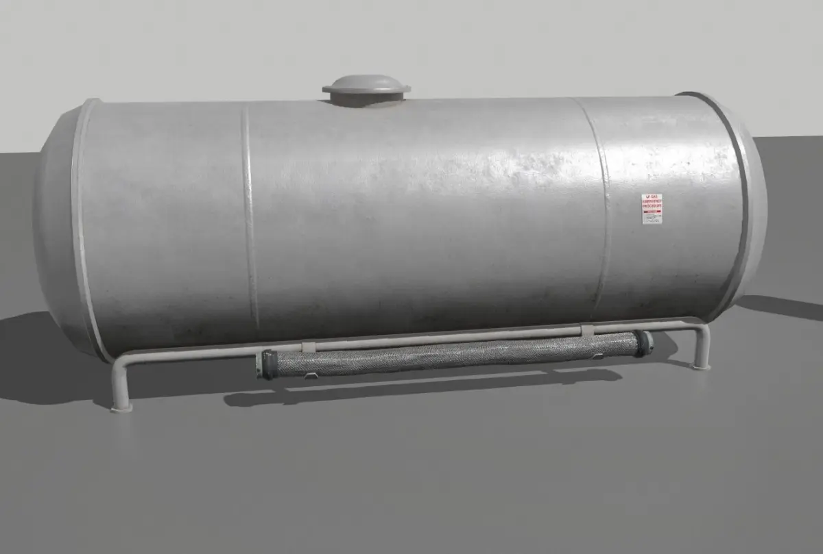 Realistic scale. For exterior and interiors. Support legs and hose are separate objects in case you want to use the tank alone.