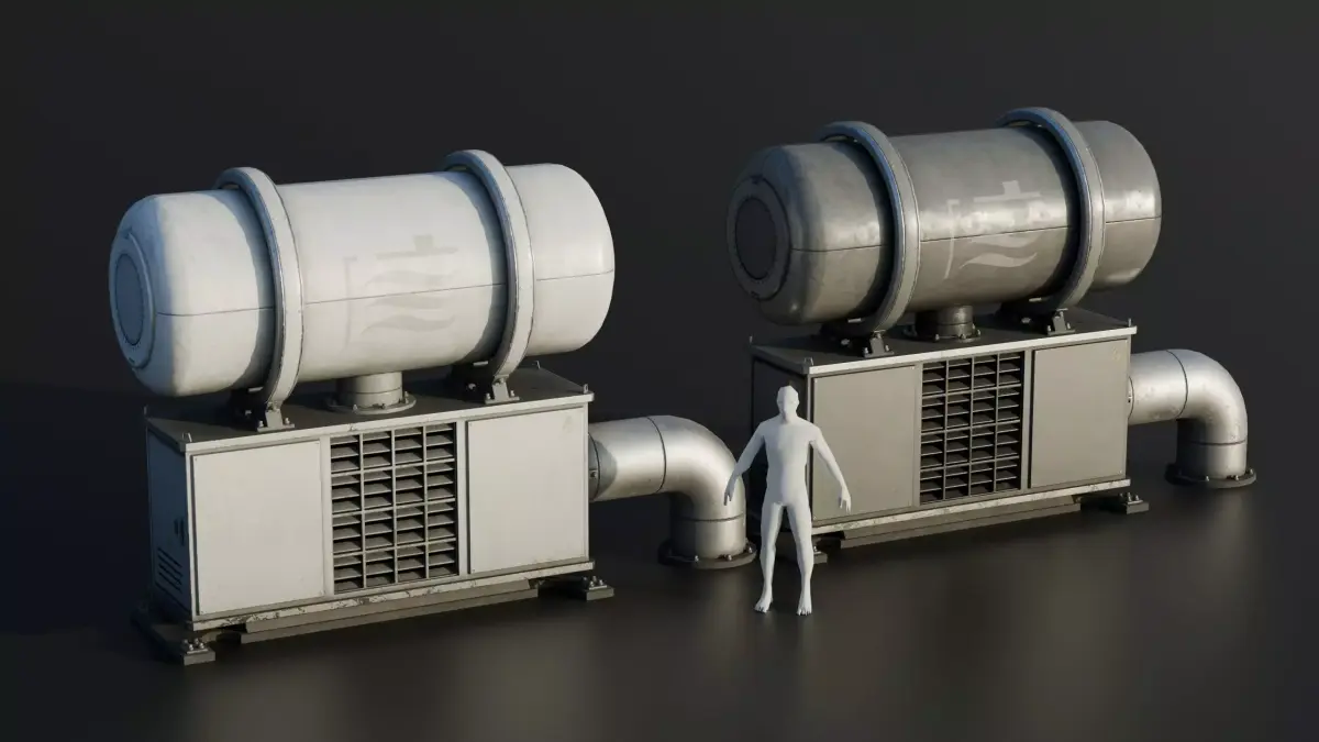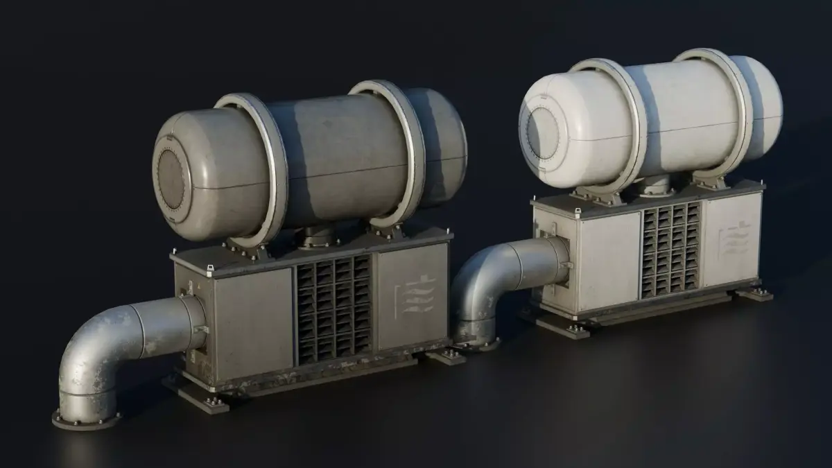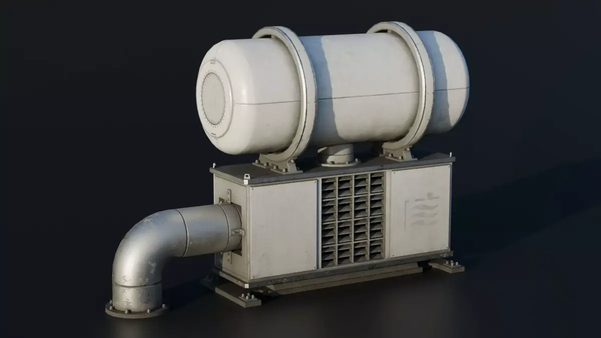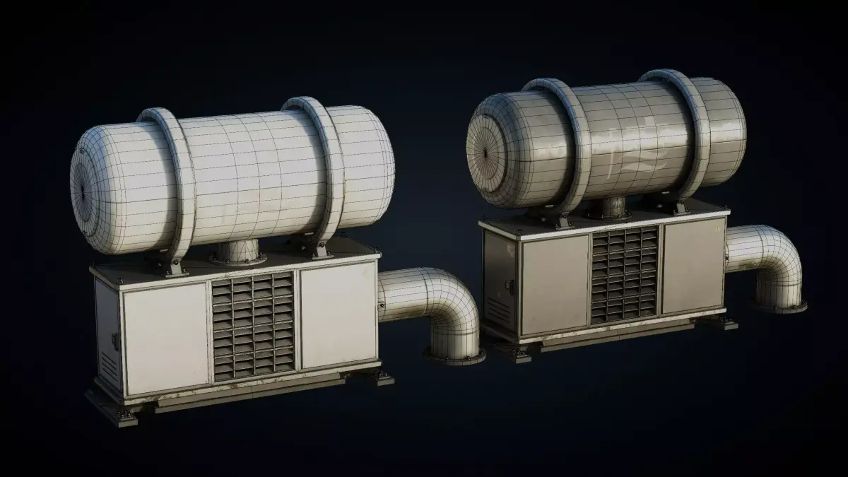 This 3D model represents an industrial roof tank system featuring one large tank / vent units designed for ventilation or fluid processing setups. The pack includes both white and black variants. Fully optimized for real-time use with high-resolution baked textures and PBR materials, ideal for games, visualization, and industrial environment design. Part of the Roof Elements Pack.