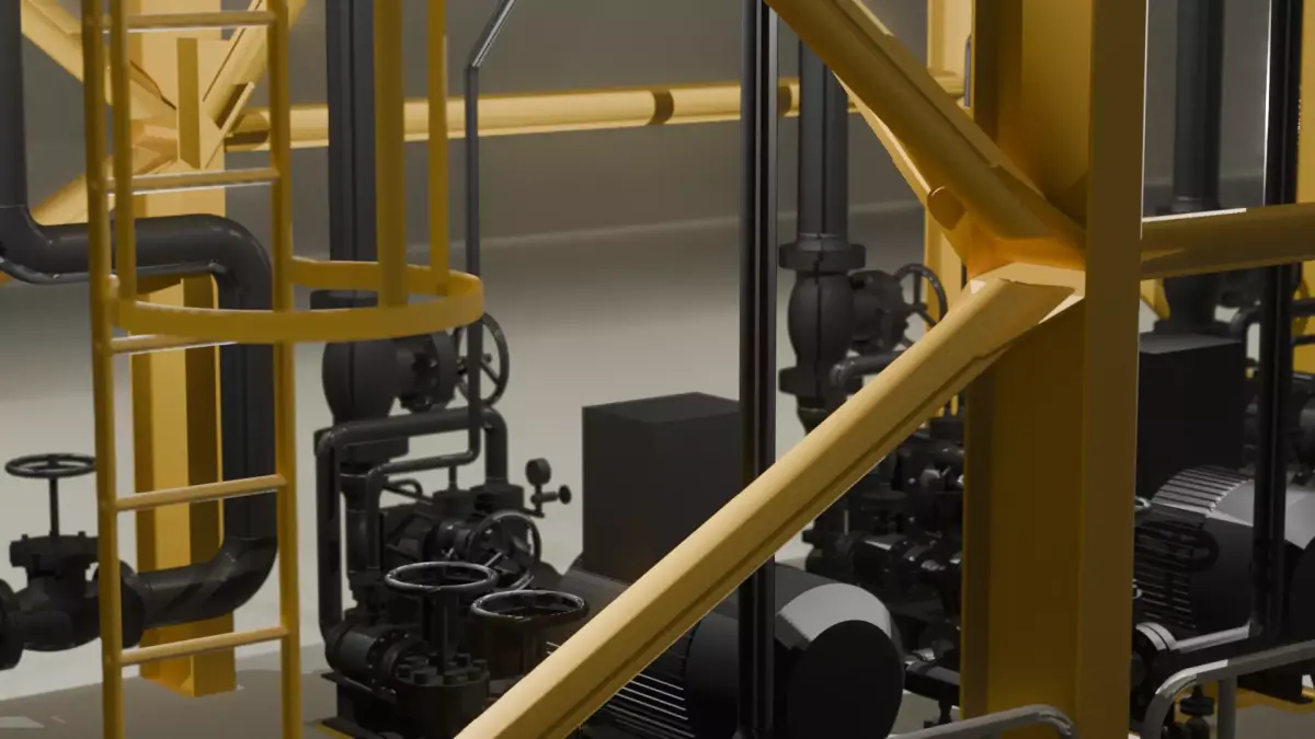 This is a professional, high-fidelity 3D model of a complex Industrial Process Skid Unit. Perfect for use in engineering visualization, architectural presentations (ArchViz), industrial simulations, and virtual reality (VR) training scenarios.