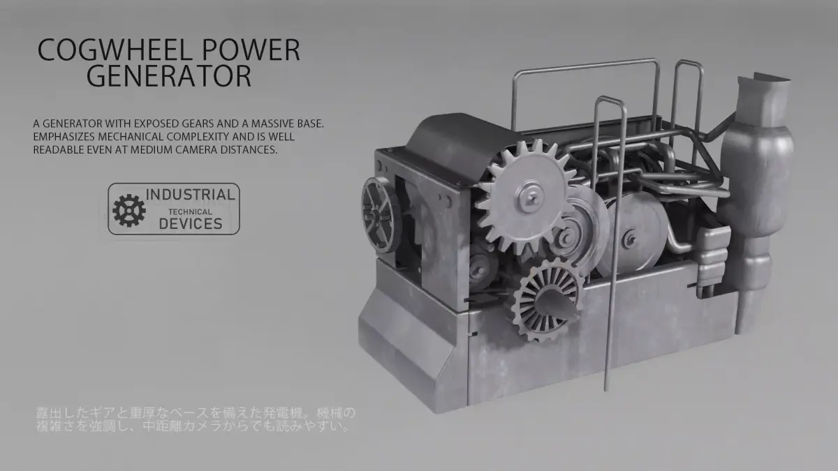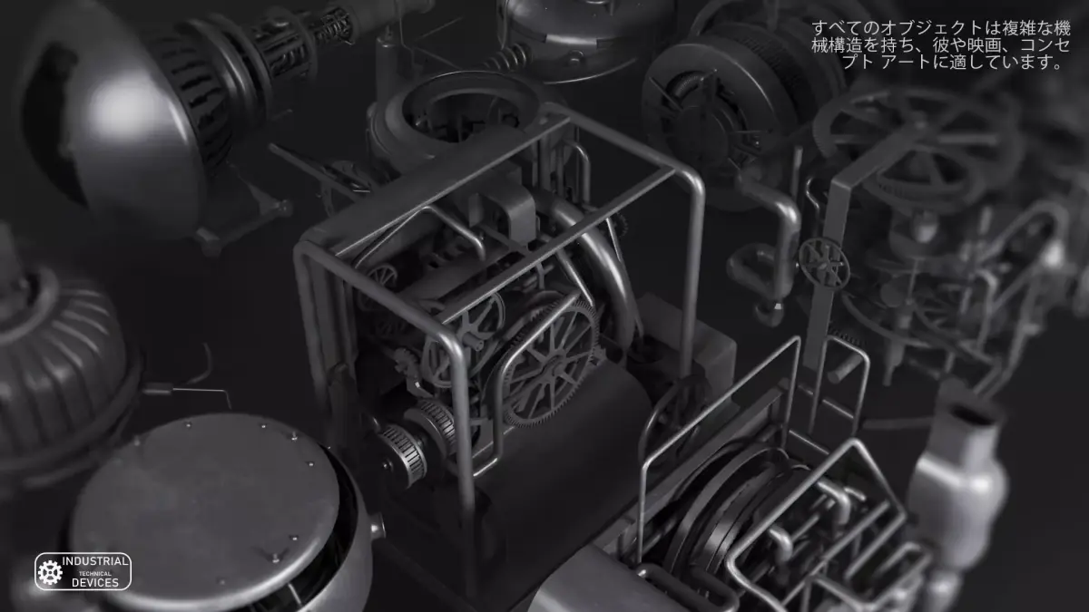 Collection of detailed industrial mechanical devices designed for sci-fi and industrial environments. The set includes generators, engines, turbines, reactors, and technical modules with complex hard-surface construction. Each model features a realistic industrial design and is suitable for games, cinematics, and real-time projects. Perfect for factories, power plants, laboratories, and futuristic environments.