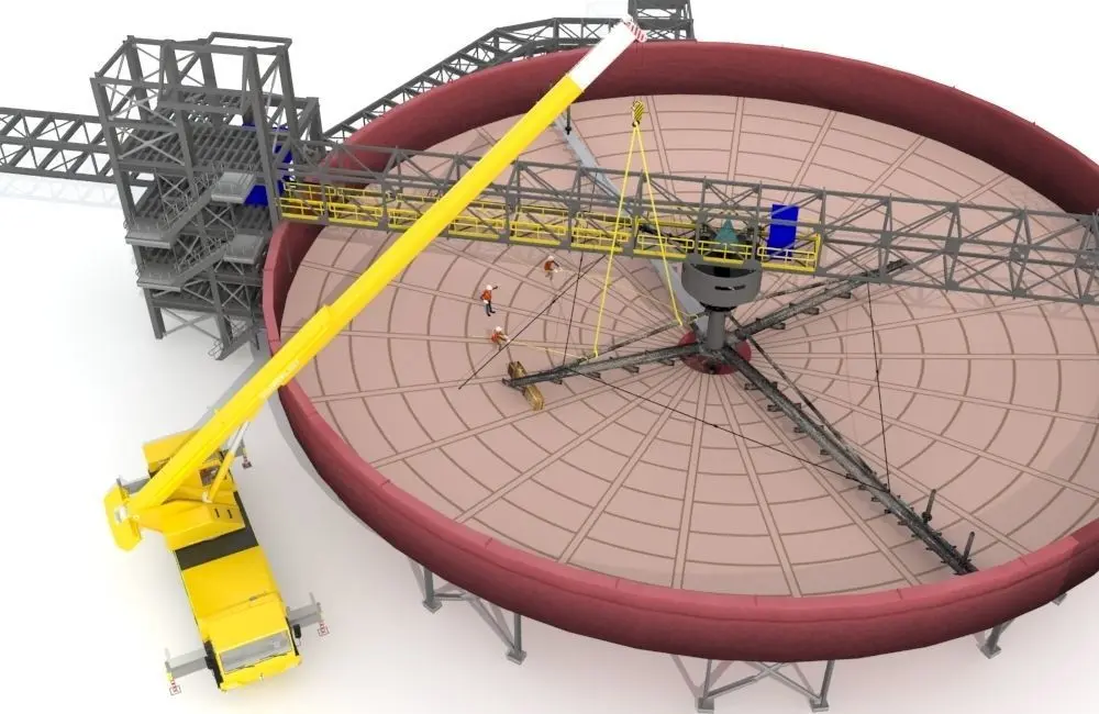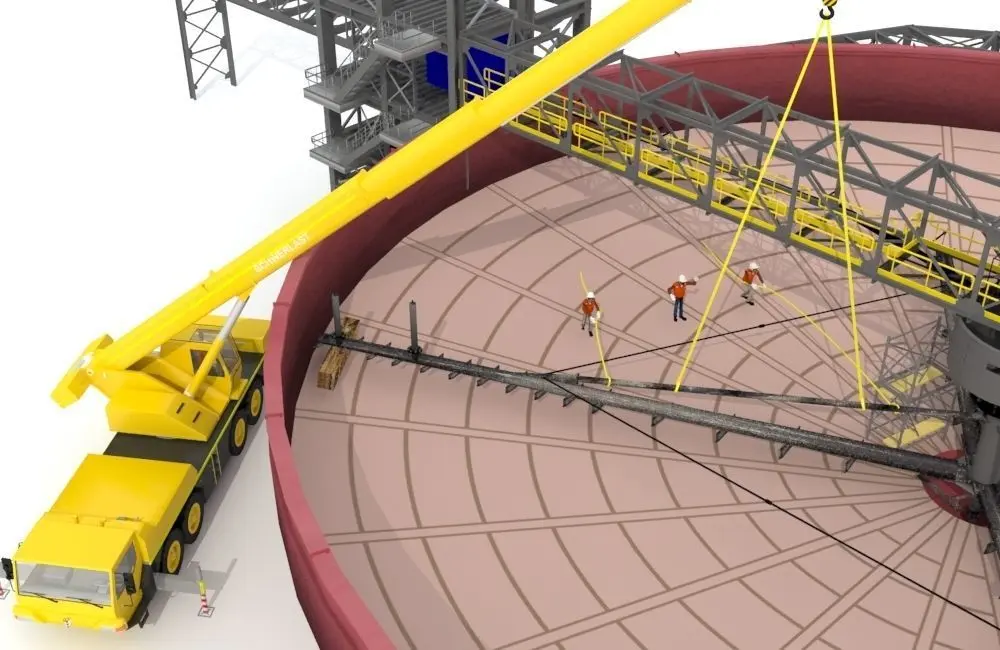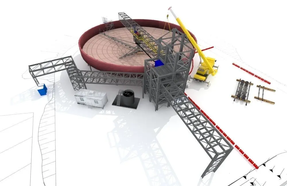 This industrial thickener 3D model is highly detailed and optimized for engineering visualizations, mining, and wastewater treatment simulations. Designed in 3ds Max and rendered with V-Ray, it features an accurate representation of the thickening process, including structural reinforcements, support beams, access platforms, and a rotating rake mechanism.