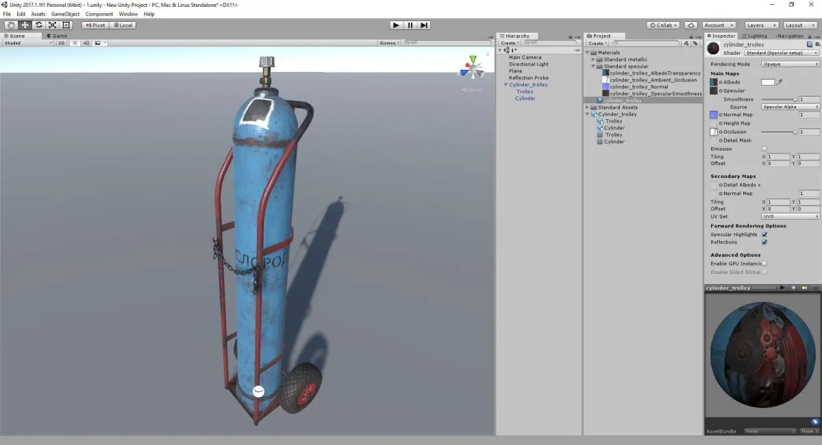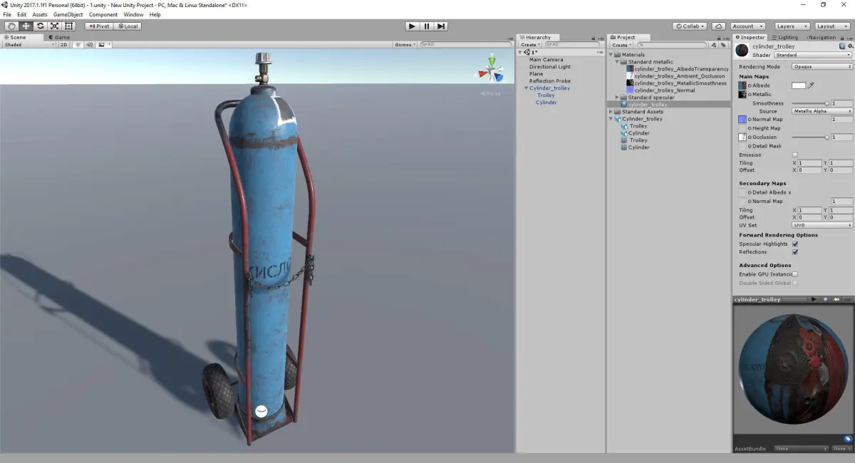 Low-poly model of industrial trolley with oxygen cylinder