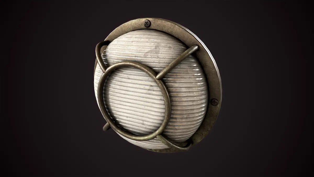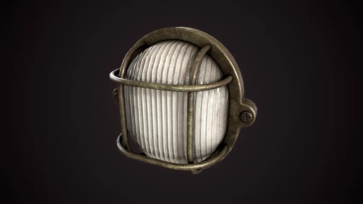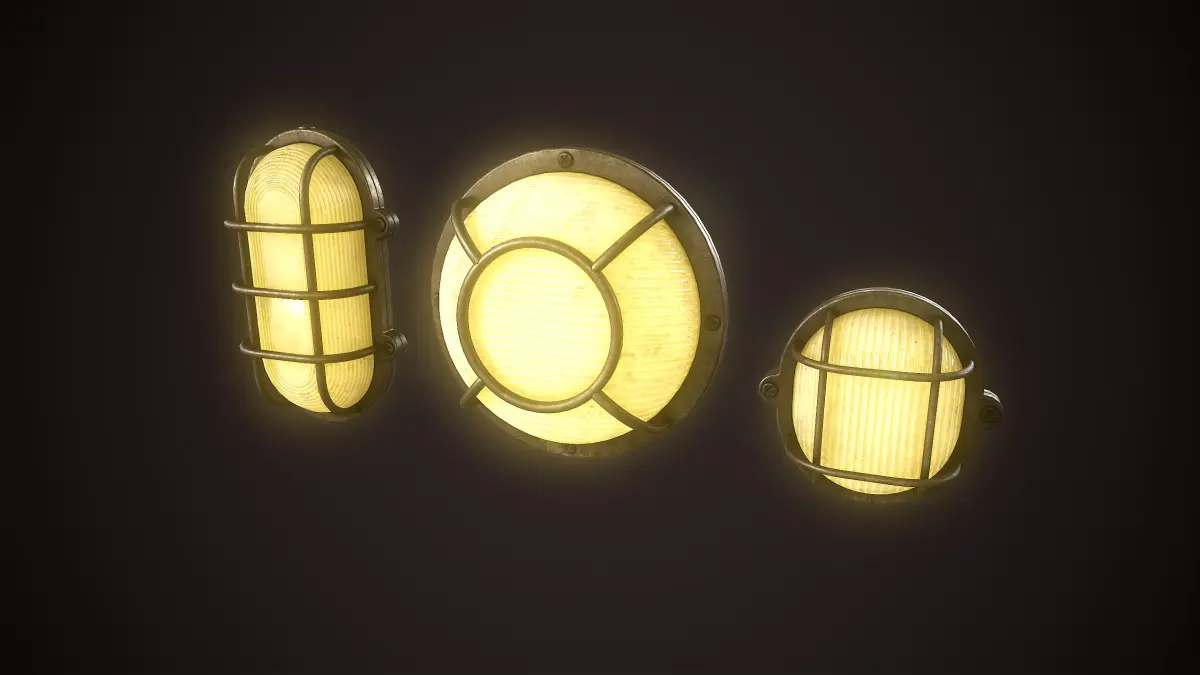 A set of three game-ready industrial wall lamps with detailed PBR textures.