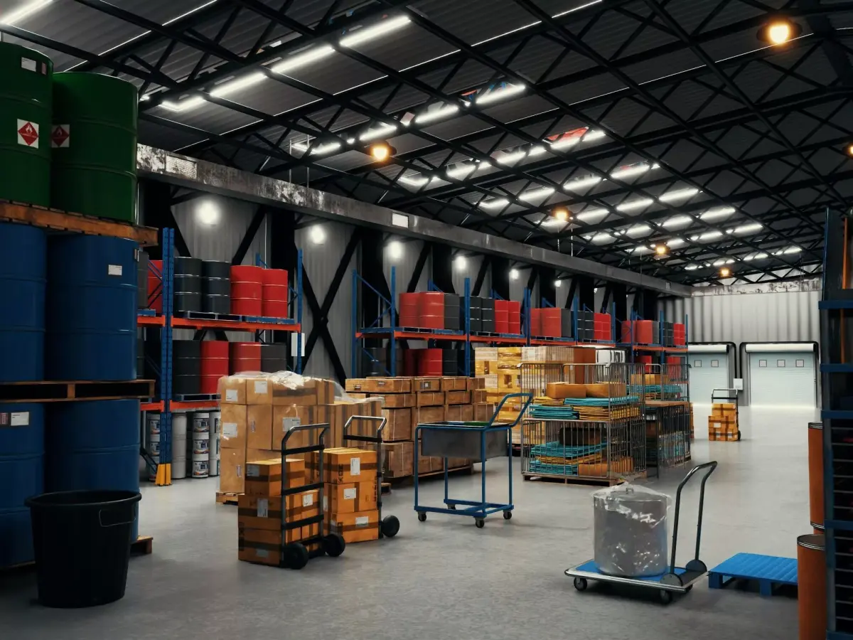 Legal: Generic industrial warehouse design without any trademarked corporate branding.