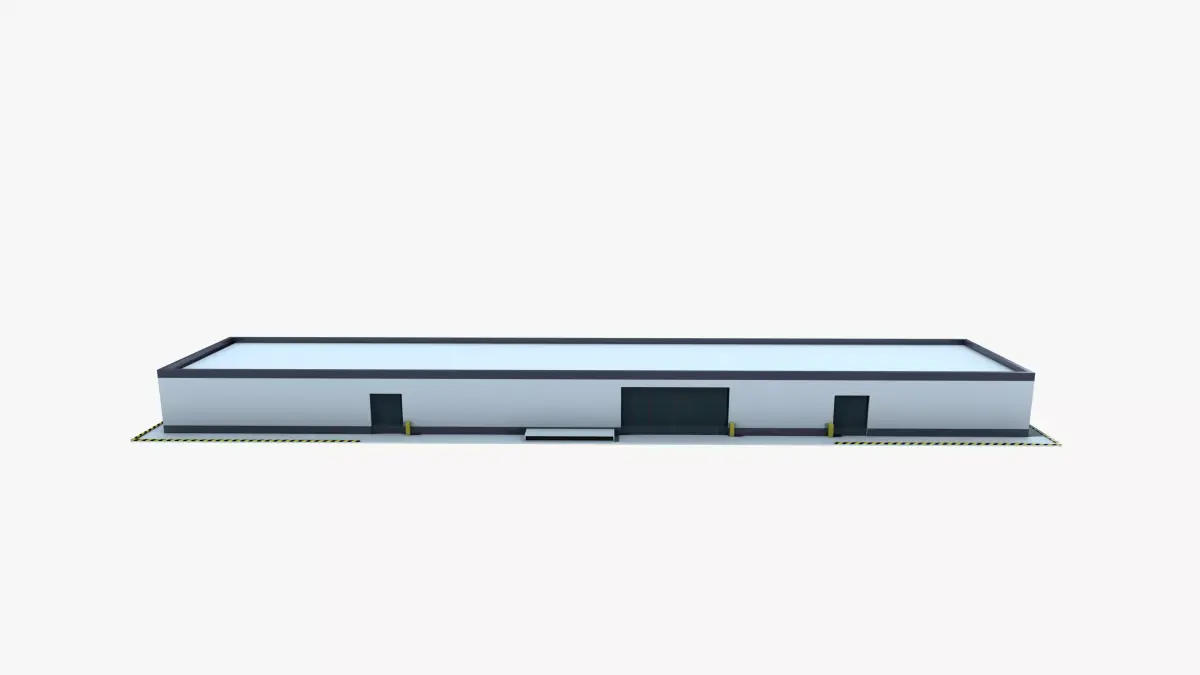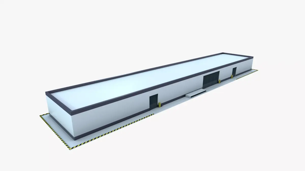 - Discover the epitome of industrial efficiency with our meticulously crafted 3D model of a large warehouse building.
