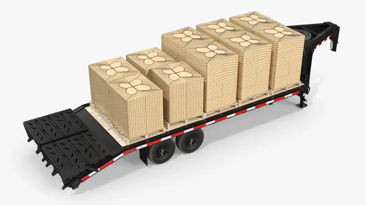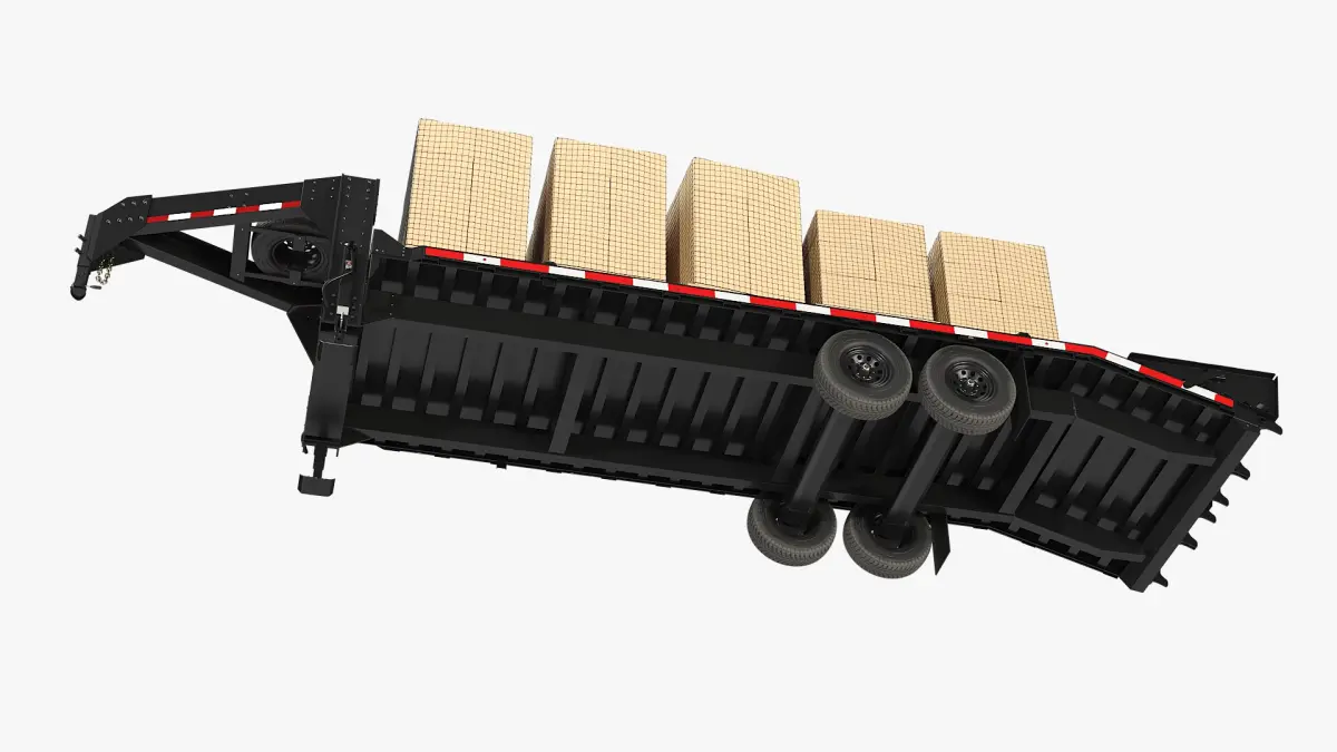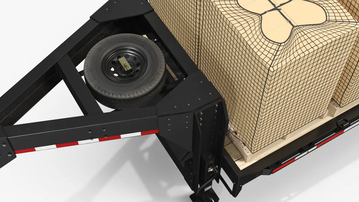 Flatbed Freight Trailer Carrying Boxed Cargo Black